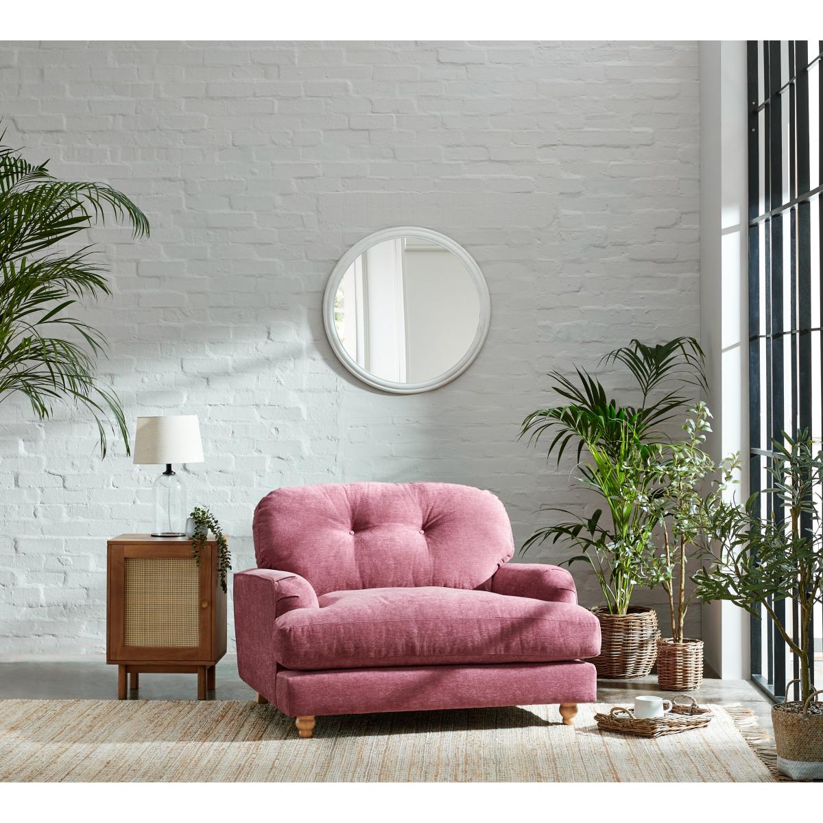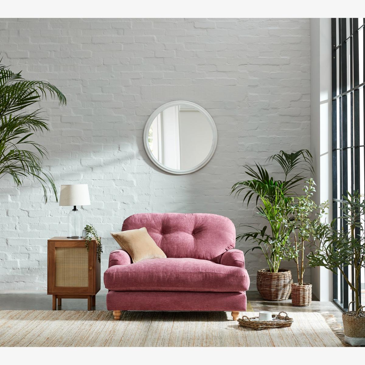 The Martha Chenille snuggle sofa combines the allure of vintage design with the plush comfort of soft chenille fabric. This snuggle sofa invites you to sink into its cosy embrace, with fibre-filled seating ensuring a snug experience. The turned wooden legs add a touch of nostalgia to your decor, making it a perfect choice for a retro-inspired living space.