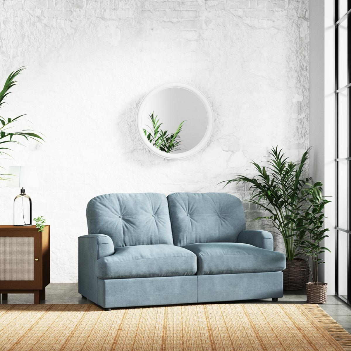 * Converts in to a double bed* Soft Chenille Upholstery* Chesterfield style* Part of the Martha family Wrapped in sumptuous chenille upholstery, this sofa radiates sophistication and comfort. Its plush cushions offer unparalleled relaxation, serving as a stylish two-seater sofa for everyday lounging or easily transforming into a cosy bed for overnight guests. Embracing the classic Chesterfield style with tufted detailing, rolled arms, and turned wooden legs, this piece reflects skilled craftsmanship, adding a touch of traditional charm to any living space. This product has fibre filled seat cushions. This means they require vigorous plumped by shaking and redistributing the fibres daily. This will add air back into the fibres and preventing clumping, flattening and the seat dipping.