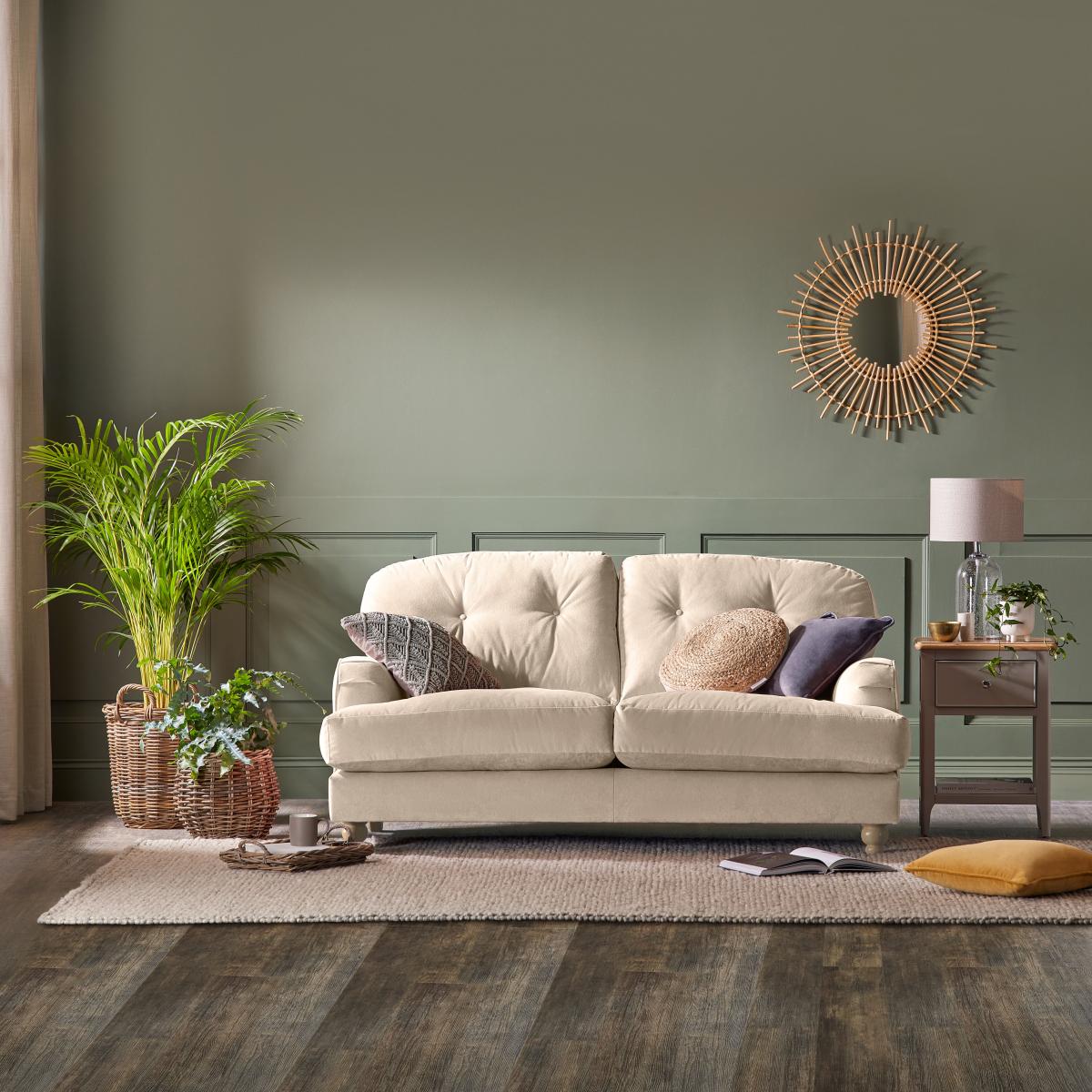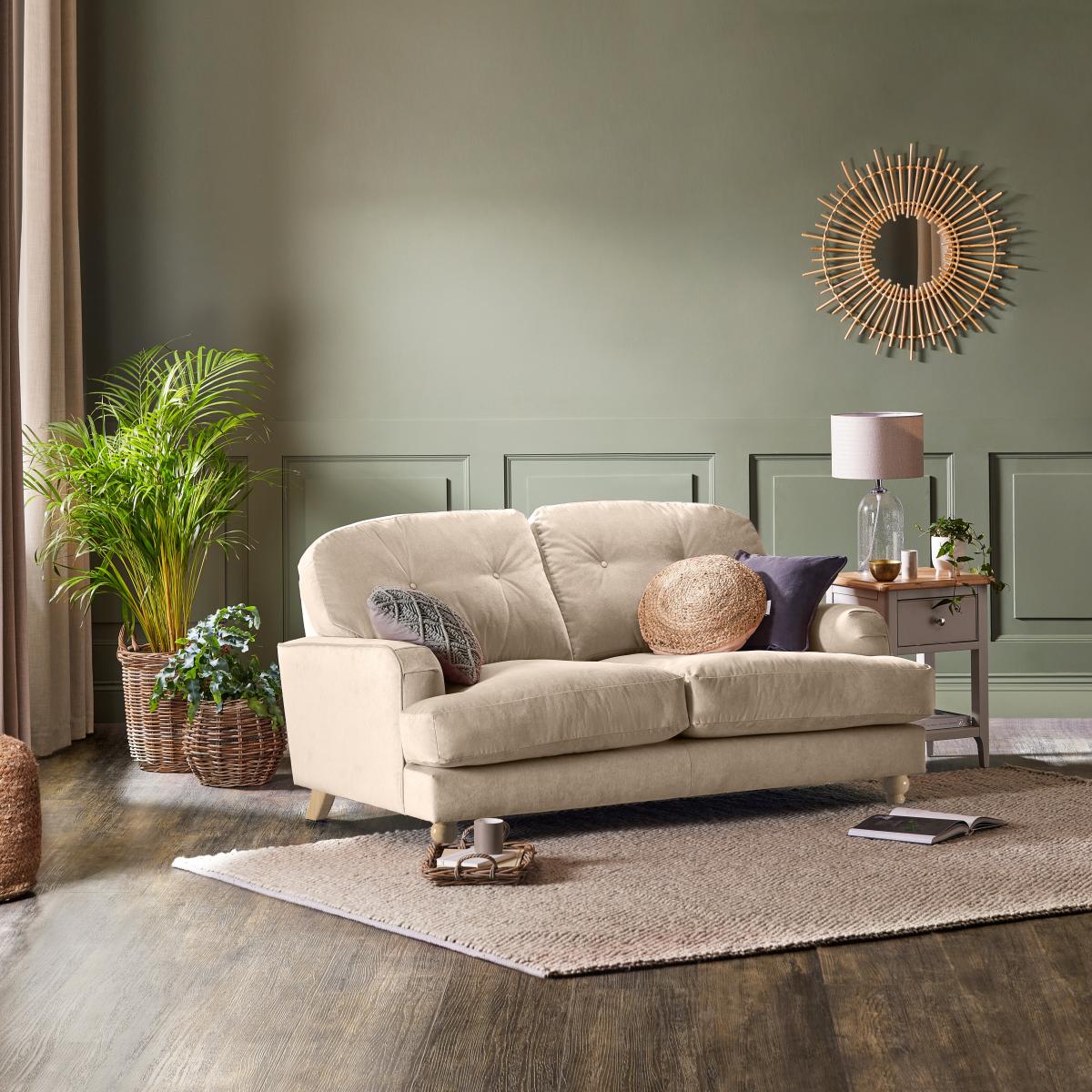 Martha Vintage Velvet 2 Seater Sofa Warm Sand