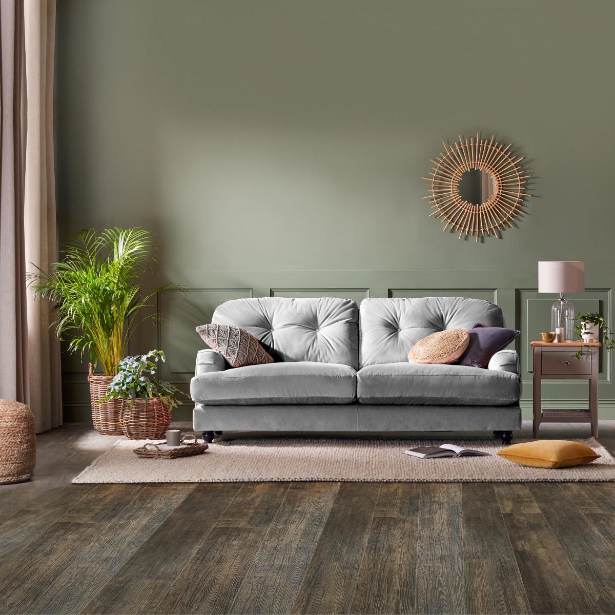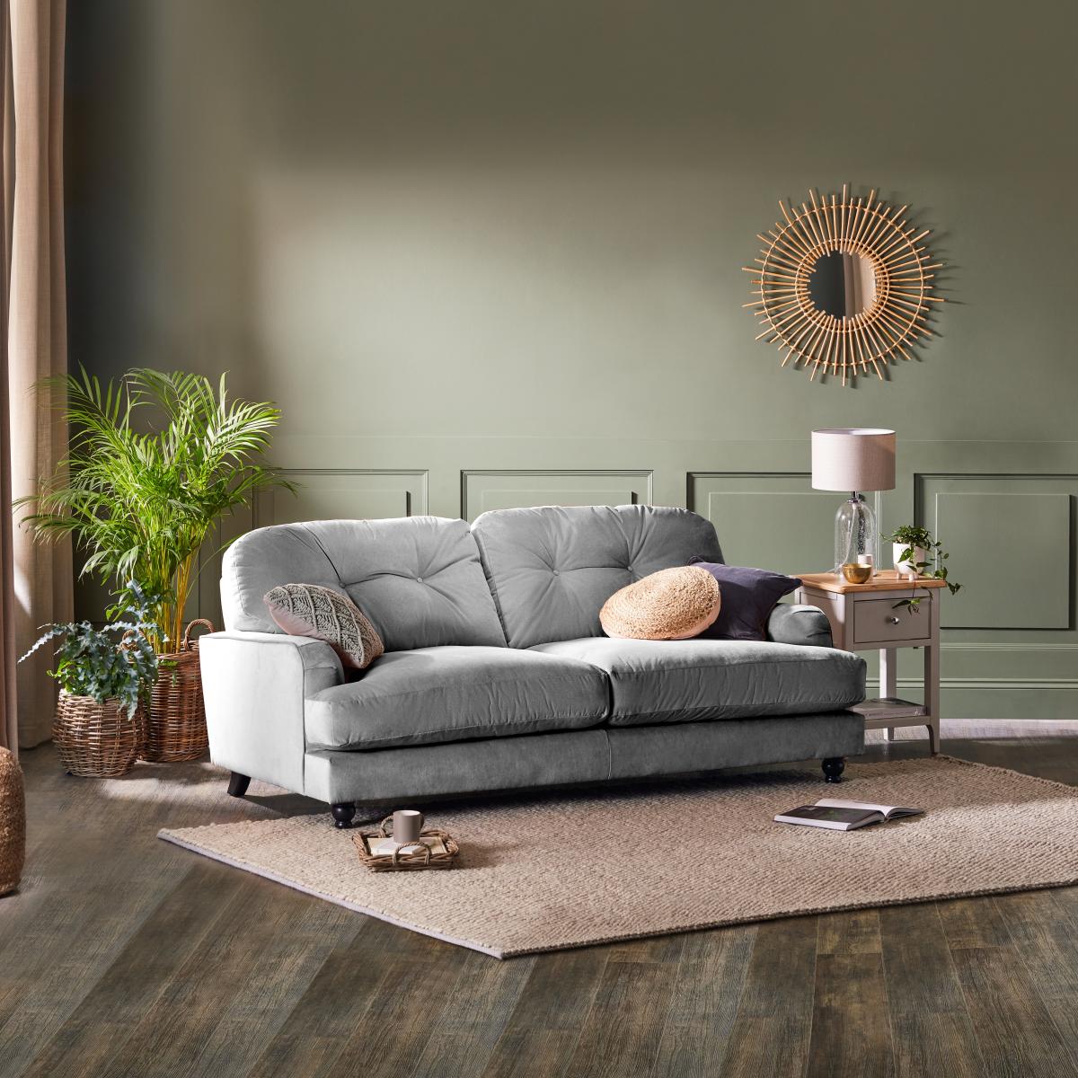 I love this vintage velvet three-seater in dove grey for its timeless elegance and versatile colour. It works well in both modern and classic interiors, adding a touch of softness and sophistication to the space. The velvet upholstery brings a plush, inviting feel, making it perfect for cosy moments. To style it effectively, consider adding textured cushions and throws in complementary tones or subtle patterns to enhance its vintage charm. Pairing it with natural wooden or brass accents will create a warm, inviting atmosphere, while keeping surrounding decor simple ensures the sofa remains the focal point. This piece is a smart choice if you’re aiming for a relaxed yet refined living room aesthetic.