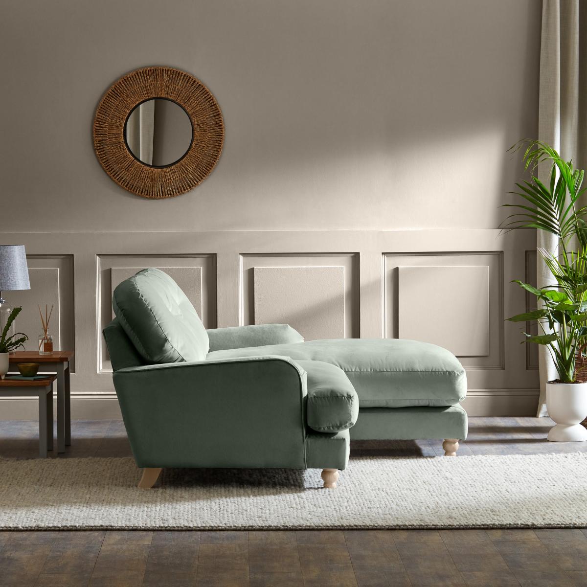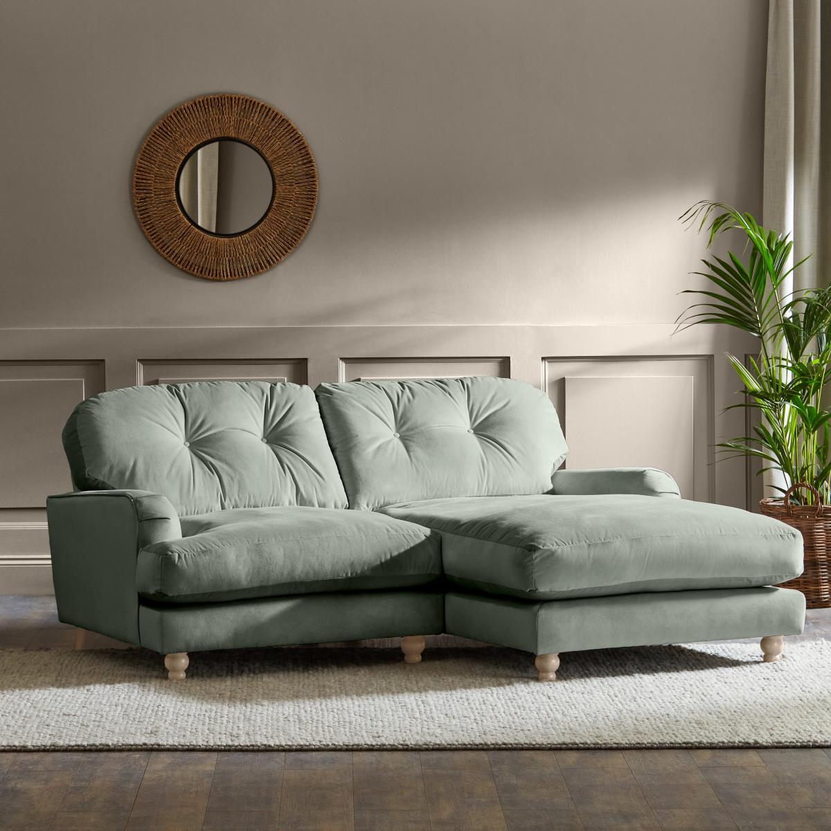 When you’re looking to add that finishing touch to your sitting area, the Martha Corner Chaise is the perfect fit. We couldn't resist the sophisticated charms of this compact, vintage-effect sofa. The turned wooden legs, soft-touch velvet cushions and comforting fibre-filled seating make this corner chaise a real beauty.