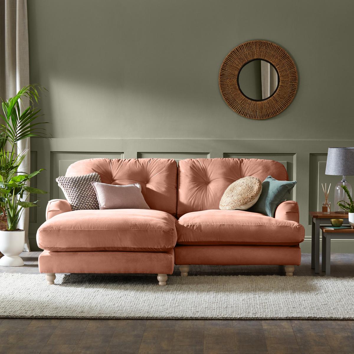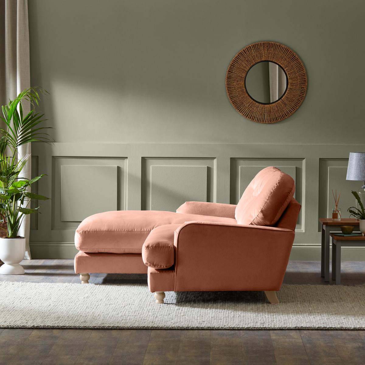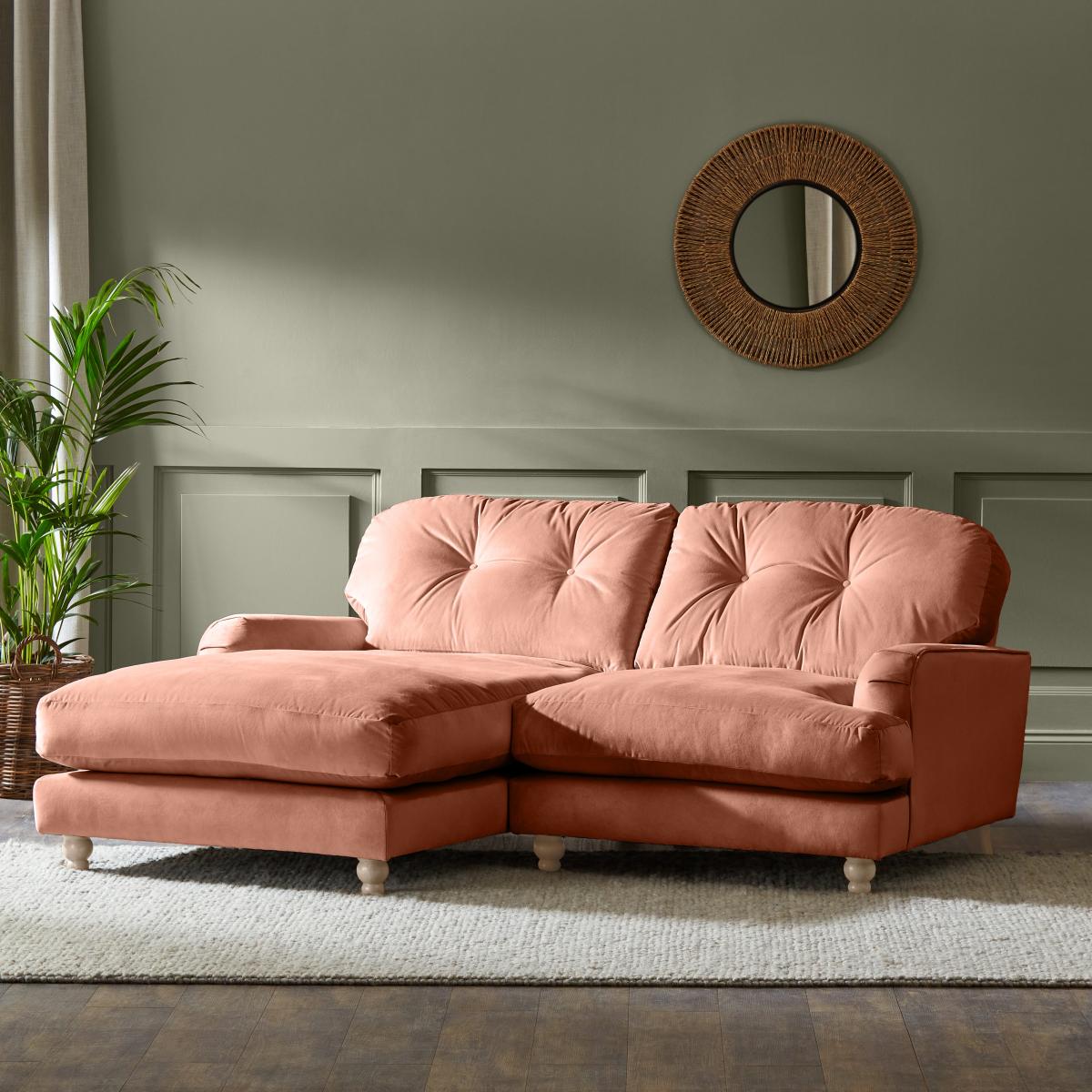 When you’re looking to add that finishing touch to your sitting area, the Martha Corner Chaise is the perfect fit. We couldn't resist the sophisticated charms of this compact, vintage-effect sofa. The turned wooden legs, soft-touch velvet cushions and comforting fibre-filled seating make this corner chaise a real beauty.