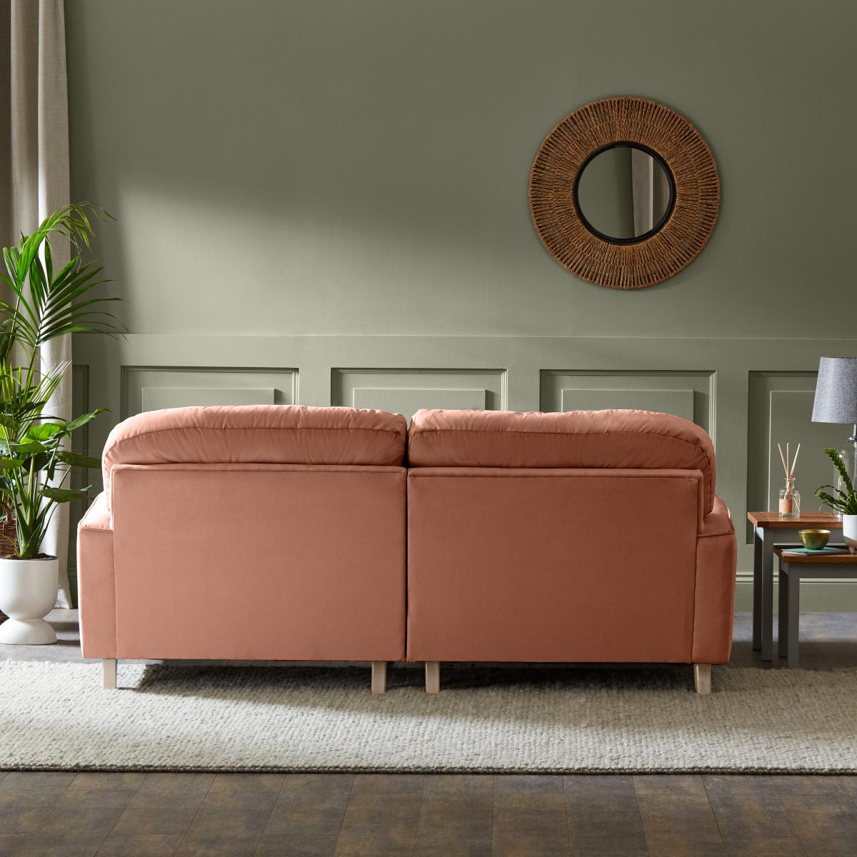 The Martha vintage velvet corner chaise is a lovely choice for adding a touch of elegance and colour to both traditional and contemporary interiors. I love its warm apricot tone, which brings a cosy yet sophisticated vibe to a room. The velvet fabric adds richness and texture, making it a versatile piece that can be styled with patterned cushions or layered throws for a relaxed look, or kept simple for a more polished feel. It works particularly well in living rooms with muted or earthy palettes, where it can serve as a statement piece without overpowering other elements. Practical tips include pairing it with a low coffee table to keep the space feeling open and balancing the colour with neutral or contrasting accessories to create visual interest.