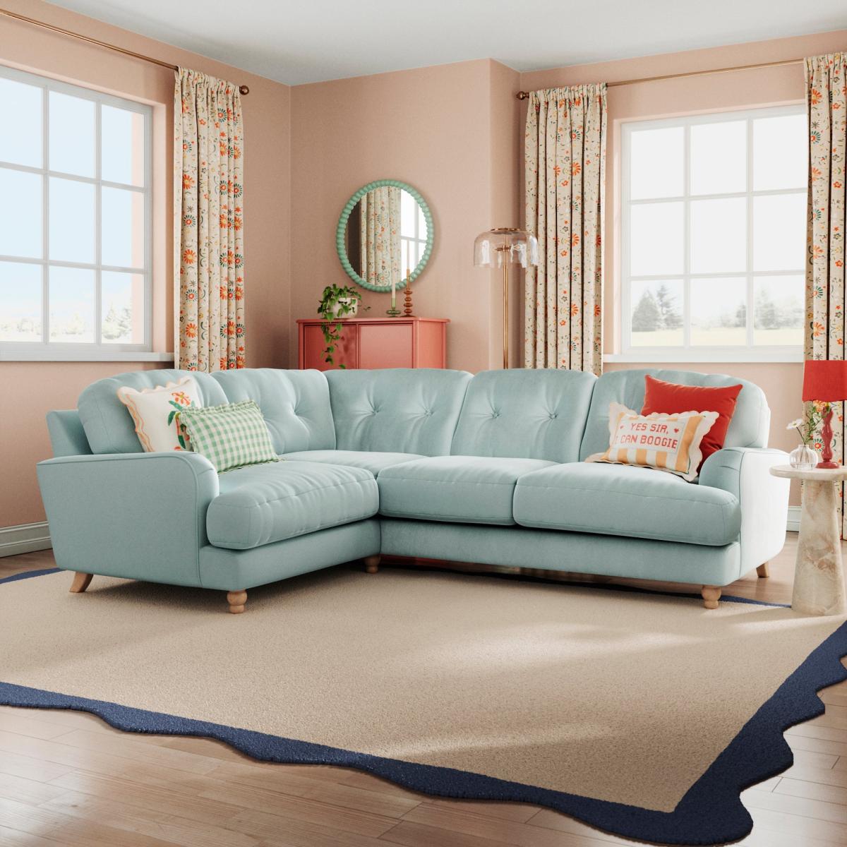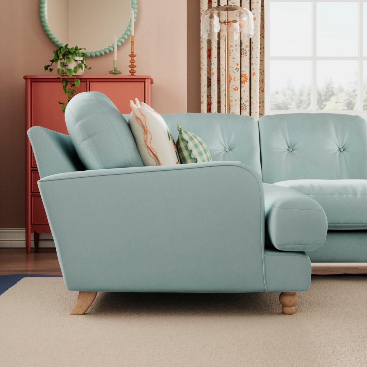 Martha Vintage Velvet Full Corner Sofa Vintage Velvet Soft Blue