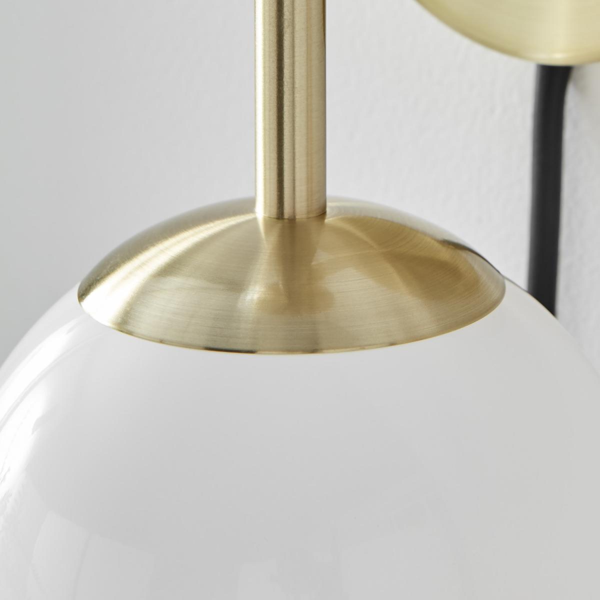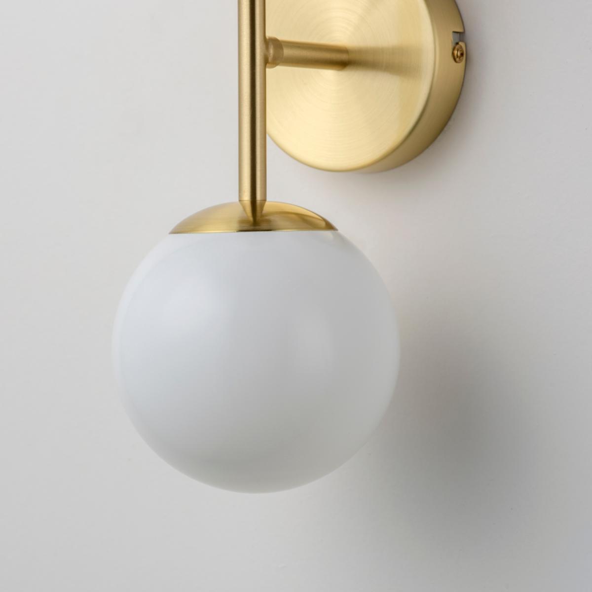 Our Martha wall lamp with 2 opal frosted glass globe shades is a gorgeous wall light that will add some serious glam glow to your living room, bedroom, or maybe next to your dining table? Featuring two opalescent glass globes with shiny brass accents, it will certainly catch the eye, but it's simple design means it won't overwhelm your space. The Martha is understated and pretty, with nods to retro vintage glam lighting styles - the frosted round glass shades have some soft Art Deco vibes that will diffuse light gorgeously. The Martha wall light will look stunning in a range of home styles, from maximalist to minimalist, glam to boho. Requires wiring into mains and 2x 20W G9 bulb (not included). Check out our full lighting range for more ideas.