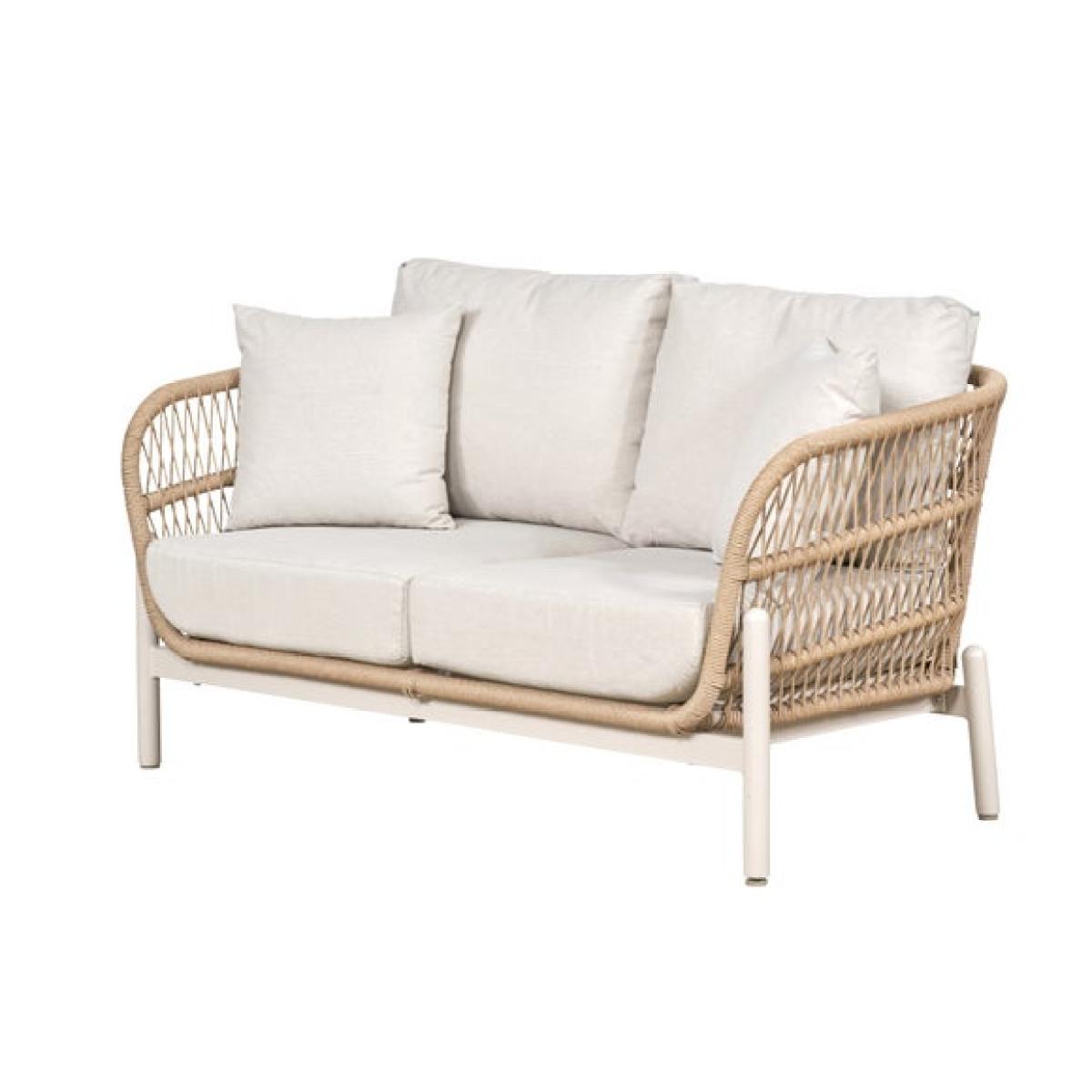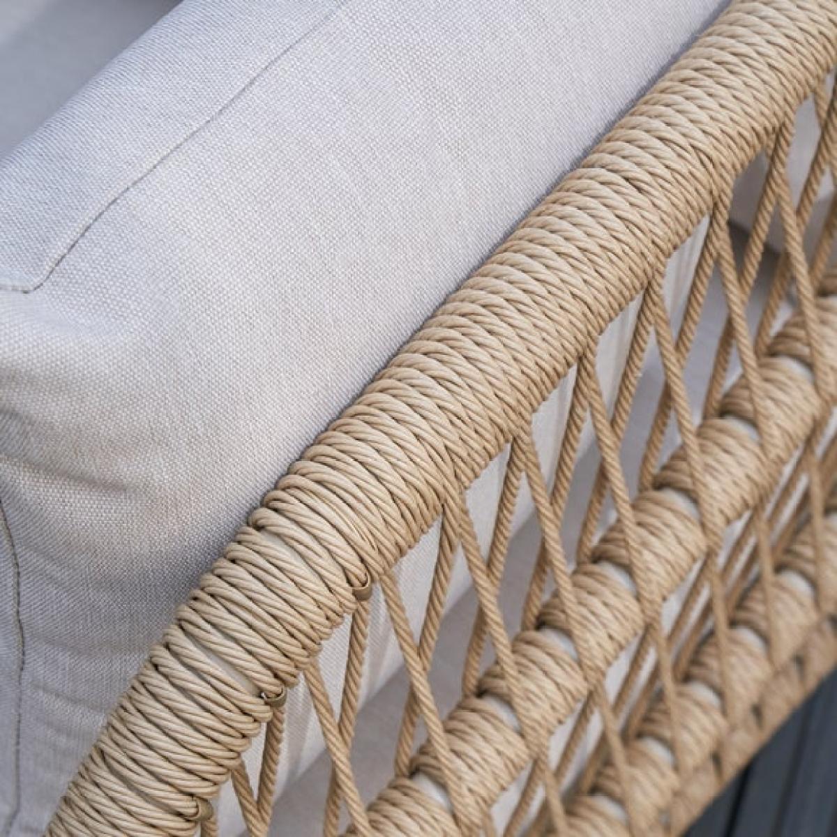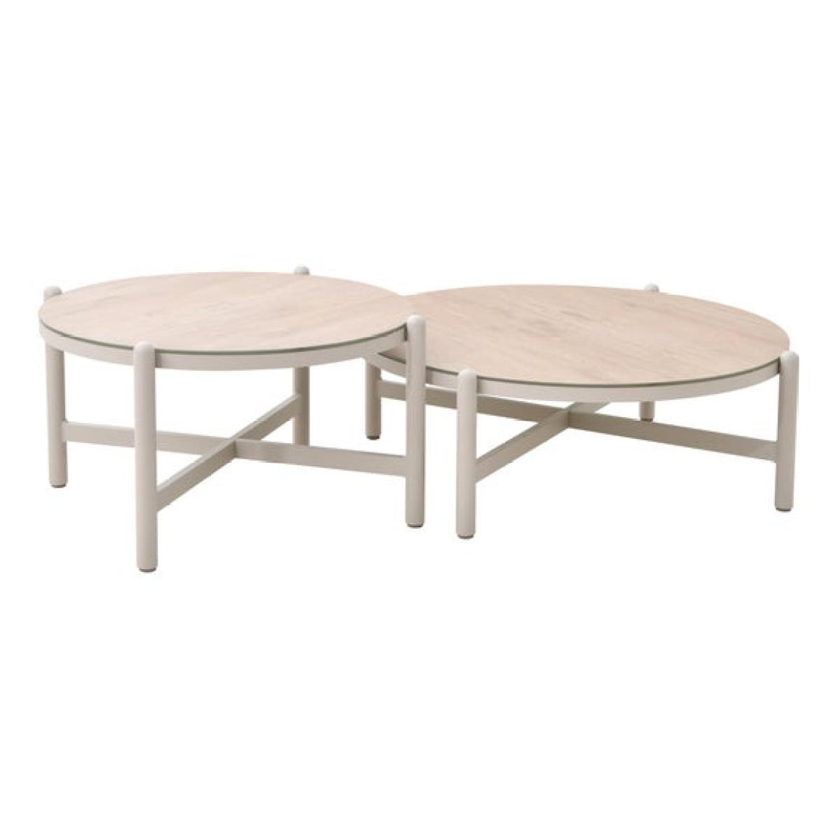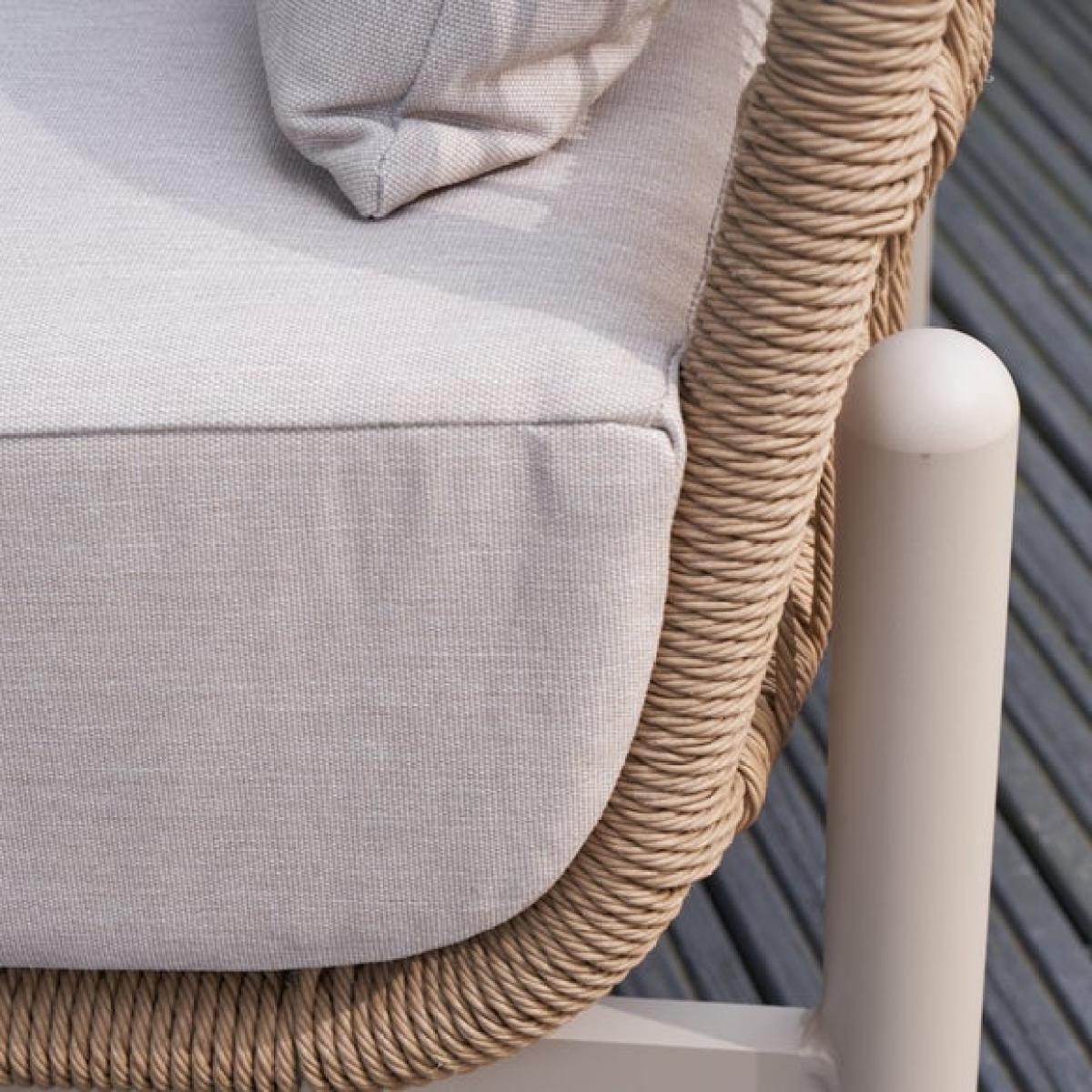 * Features a durable powder coated aluminium frame * Perfect for summer gatherings * Stain resistant cushions Sink into sunshine-ready comfort with the Martic Outdoor Sofa Table Set, a perfect pairing of style and practicality. This contemporary twin set includes two 2-seater sofas crafted from Natural Synthetic Core Weave and Latte-toned, powder-coated aluminium for a sturdy yet elegant finish. The plush Light Putty Olefin cushions aren’t just easy on the eye they’re made to resist stains, fading and soggy seats after summer showers. Accompanied by two chic round tables with an Ash wood effect top, there's plenty of room for snacks, drinks, and everything in between. Designed to coordinate seamlessly with the rest of the Martic range or shine solo in your garden space. All that’s left to do is pop the kettle on (or the fizz).