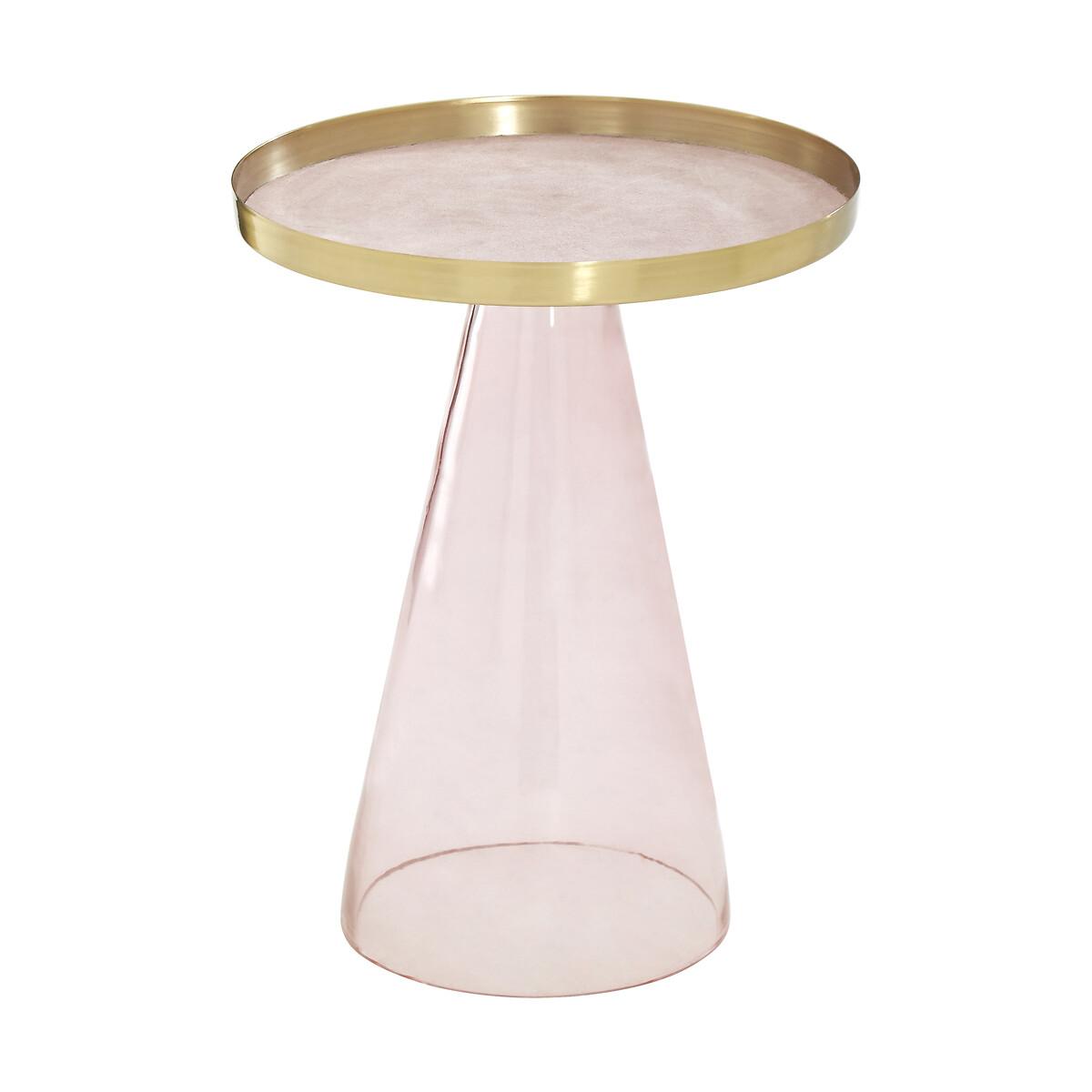 Its transparent conical base is coloured pink, creating a blush counterpoint to the reflective gold rim of the round top. Requires Assembly. Product Dimensions: 41cmx41cmx54cm Please remember to measure your available space before ordering. Packaged Dimensions: 61cmx 44cmx 44cm Weight: 5.5kg. This product will be dispatched by one of our trusted suppliers. You’ll be contacted by their selected courier about your delivery.