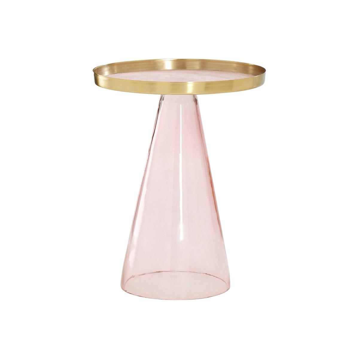 I love how this martini table’s pink-tinted glass cone base brings a soft pop of colour while the gold-rimmed top doubles as a neat tray. It sits well in contemporary or Scandi-inspired interiors, and equally lifts a neutral, minimalist scheme with a touch of warmth. Practically, it’s ideal beside a sofa or armchair for a drink or a book - style it sparingly with a small vase or scented candle so its clean lines and mixed materials really stand out.