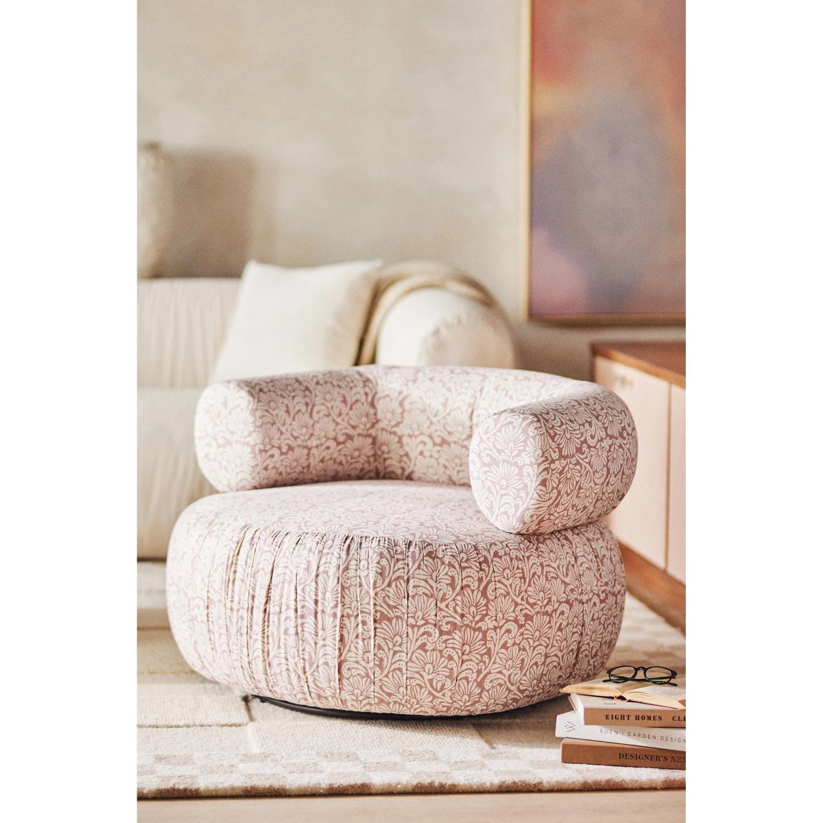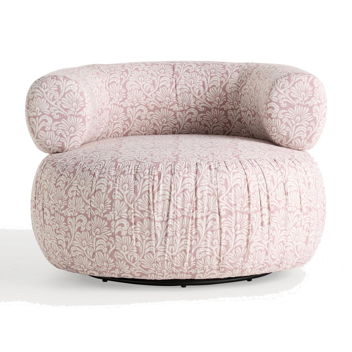 Defined by soft curved lines and upholstered in even softer velvet, the Martinique chair offers a reimagined spin on the classic accent seat. * Velvet upholstery: 100% Cotton upholstery * Cushion content: Foam & fiber fill * Poplar, gum wood frame * Spring seat construction * Swivel mechanism * This piece is intended for indoor use * No assembly required * Professionally clean * Imported