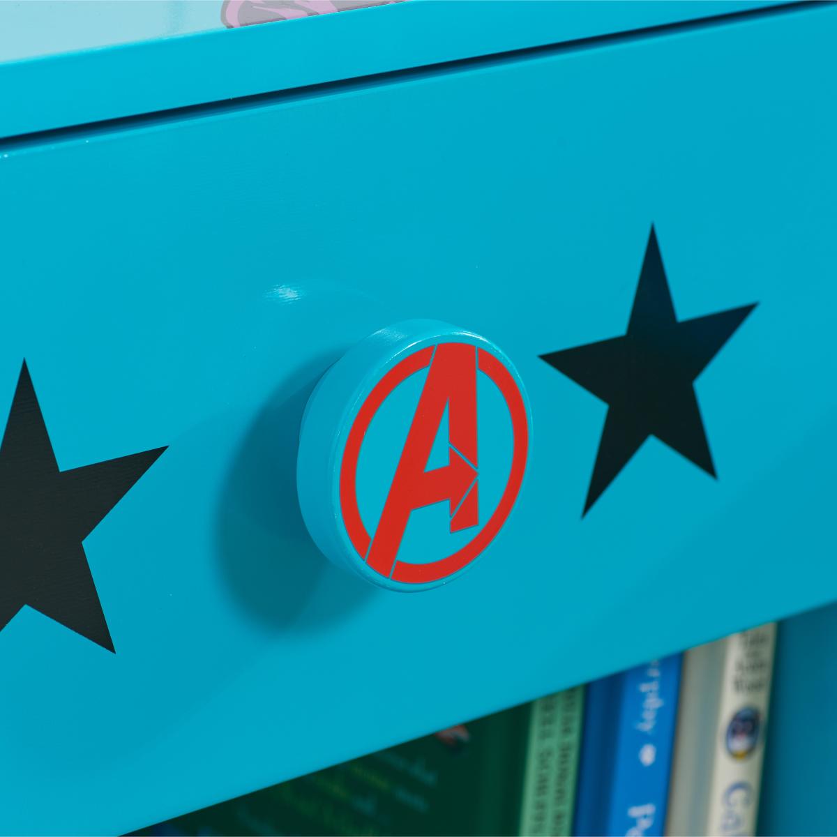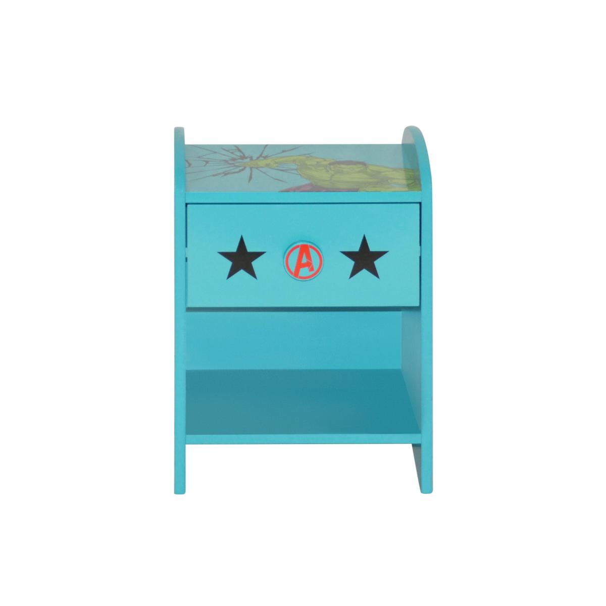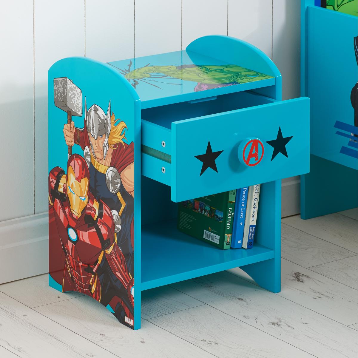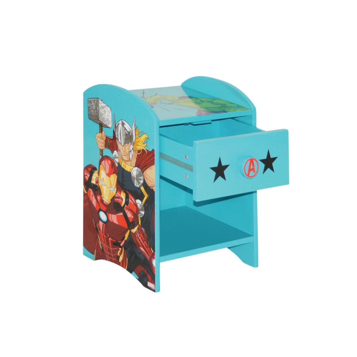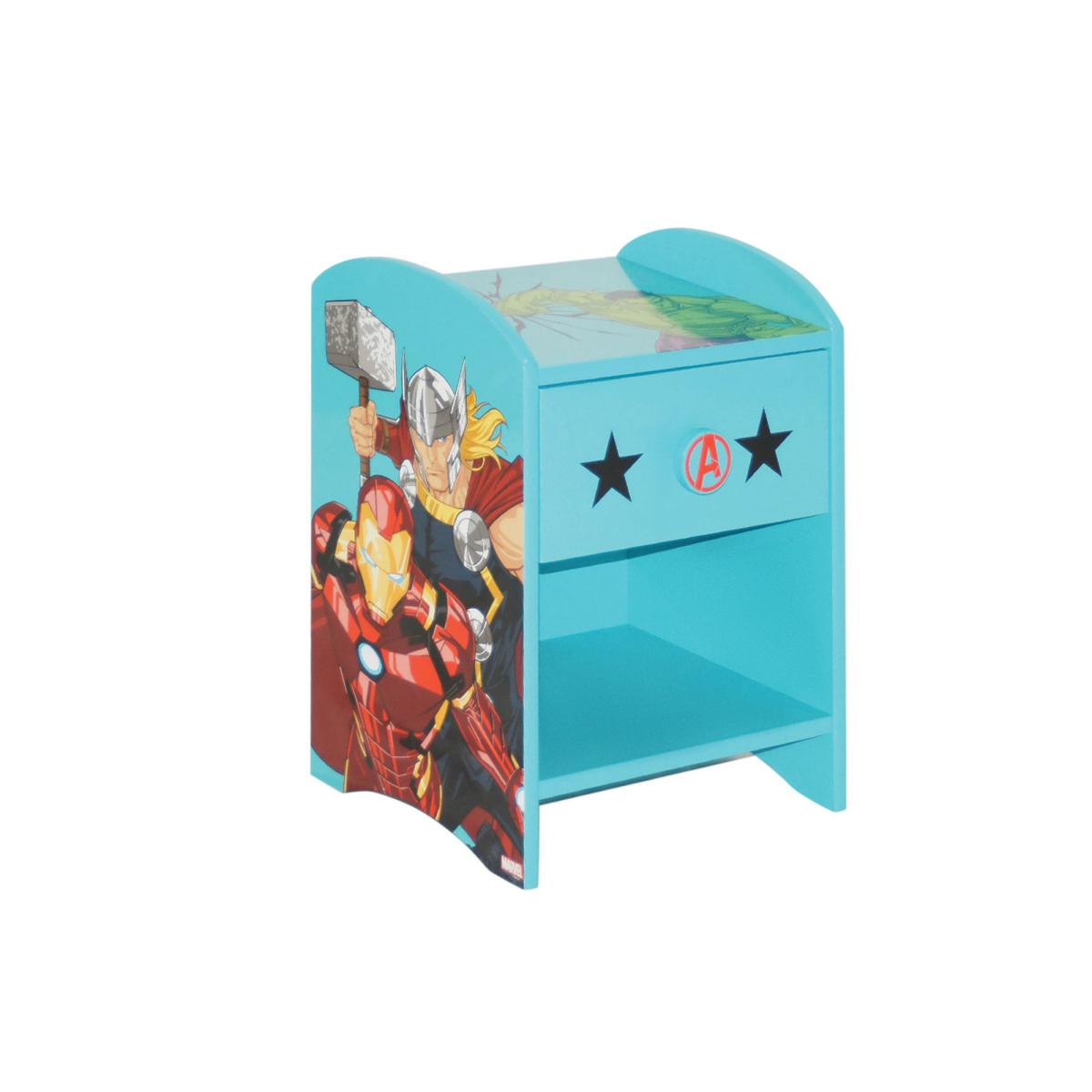 Keep your child's room organized and stylish with this Marvel Avengers bedside table! With its colourful graphics and convenient storage solution for toys, books, and night lights, this bedside unit is a must-have for all Marvel Avengers fans.
