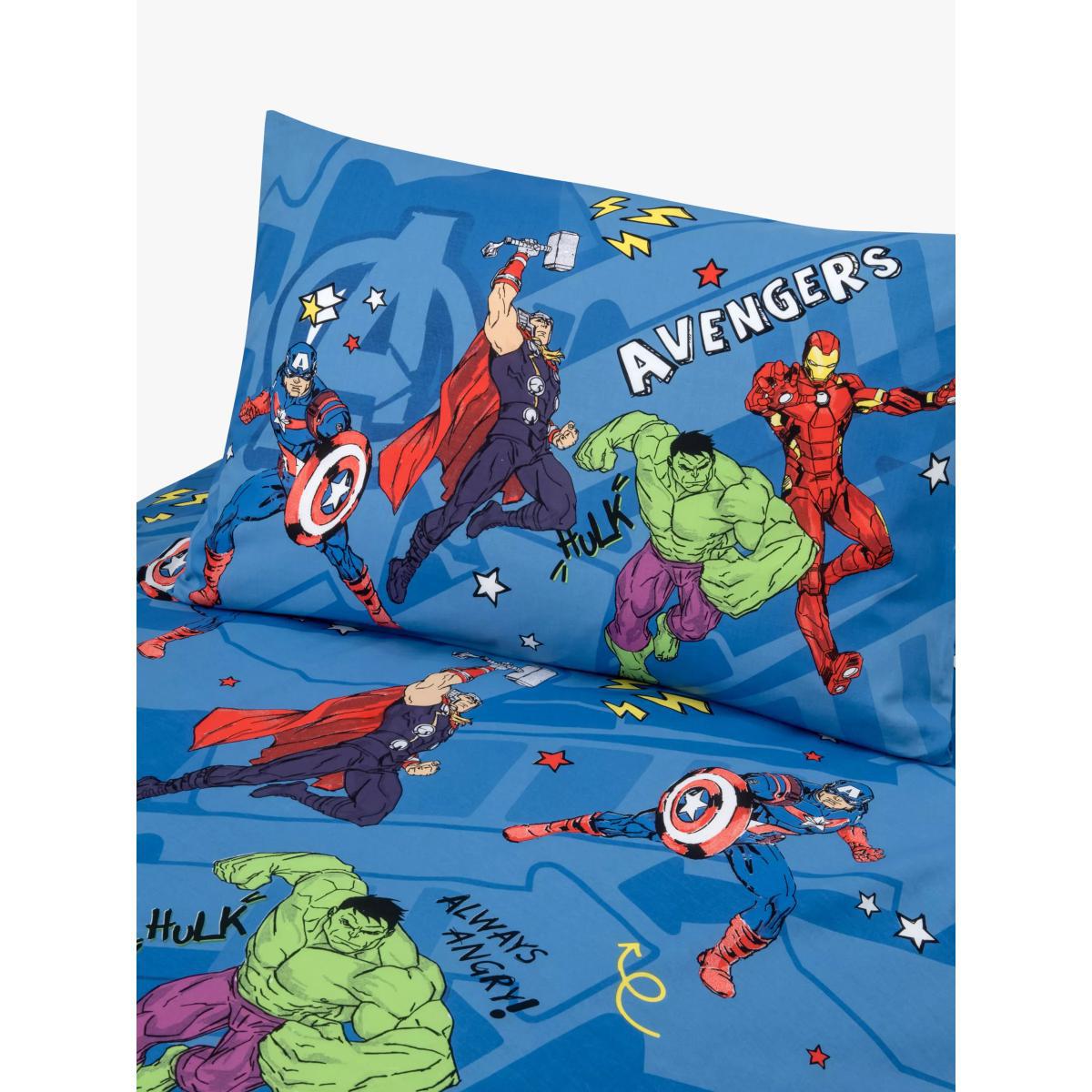 Hulk, Captain America, The Flash & Iron man leap into life in this action-packed design. The playful reverse print is just as colourful but gives a simpler look if a change of tone is needed. Made from 100% pure cotton for a breathable feel that will keep their temperature regulated all night long ensuring a sound, comfortable sleep. Good to know: The single set comes with one standard pillowcase and the double set comes with two standard pillowcases. To fit duvet/pillow size (cm) Standard pillowcase, L75 x W50cm Single duvet cover, L200 x W135cm Double duvet cover, L200 x W200cm More Sustainably Sourced By buying cotton products from John Lewis & Partners, you're supporting more sustainable cotton farming through the Better Cotton Initiative. BCI is a not-for-profit organisation that exists to make global cotton production better for the people who produce it, better for the environment it grows in, and better for the sector's future. BCI works with partners around the world such as WWF, Solidaridad and Cotton Connect to train farmers to produce cotton more sustainably. Better Cotton is sourced via a principle of "mass balance" and is not physically traceable to end products. However, BCI Farmers benefit from the demand for Better Cotton in equivalent volumes to those we source.