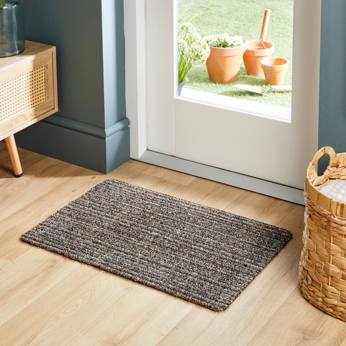Trap dirt, dust and mud at the door with our super absorbent doormat, made partially from recycled materials. It offers a unique material composition to help reduce noise and echo, whilst ensuring it stays in place, with a robust anti-slip backing. This scratch resistant doormat is made in the UK and is machine washable on a low temperature. Machine washable at 30° and can be tumble dried on a low temperature.