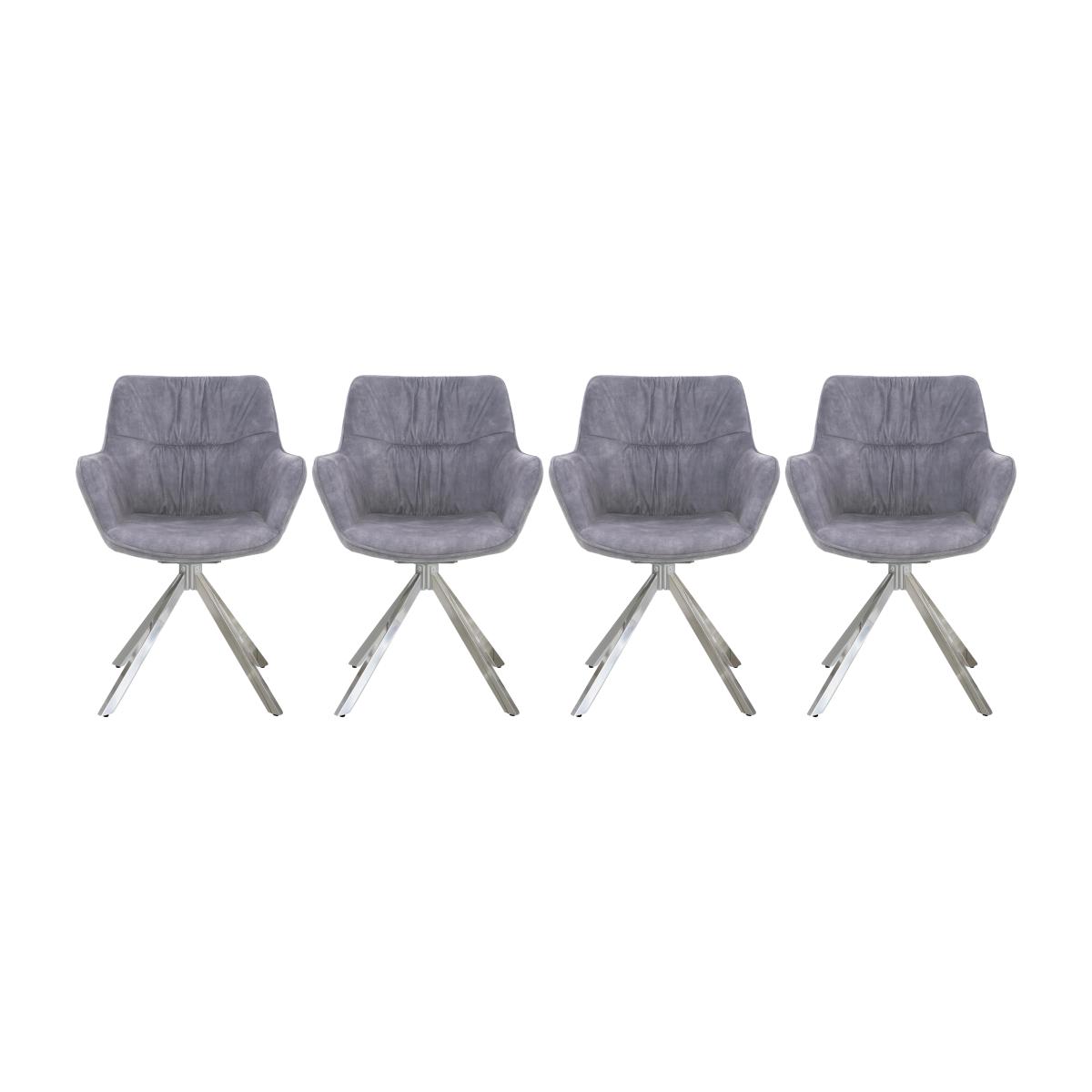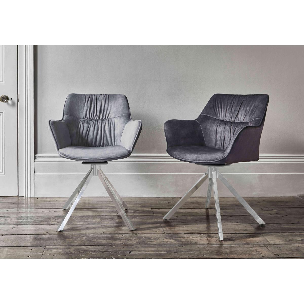 Can’t decide between bold urban style and modern glam luxury for your dining room? We have the very range for you. With glossy ceramic tops and artisan-made bases, our Marvel dining collection showcases statement style in a choice of two distinctly different looks for extending dining tables, dining sets, sideboards and occasional tables. Marvel Black features bold black iron bases that deliver a contemporary industrial vibe, while Marvel Chrome has high-shine chrome-effect bases for a gorgeously glam aesthetic. Each look includes its own velvet-upholstered swivel dining chairs. Showstopping style two ways, only at Furniture Village. Create the perfect smaller dining set with this set of four swivel-base dining chairs. The glam chrome-effect finish and soft velvet upholstery give them stylish retro appeal. Why you'll love it Be dinner party-ready with this set of 4 swivel dining chairs. Modern glam style. Well-cushioned and curvaceous style with arms. Velvet upholstery in a choice of colours. Chrome-effect metal swivel bases. Handcrafted and only at Furniture Village. This set of 4 swivel dining chairs is part of the Marvel Chrome range. What you need to know Dining chairs are cushioned with foam. The flattening and shading of pile fabrics like velvet is unavoidable. Designed to complement our Marvel Chrome extending dining table. Be sure to browse Marvel Black – it’s Marvel Chrome with an urban look.