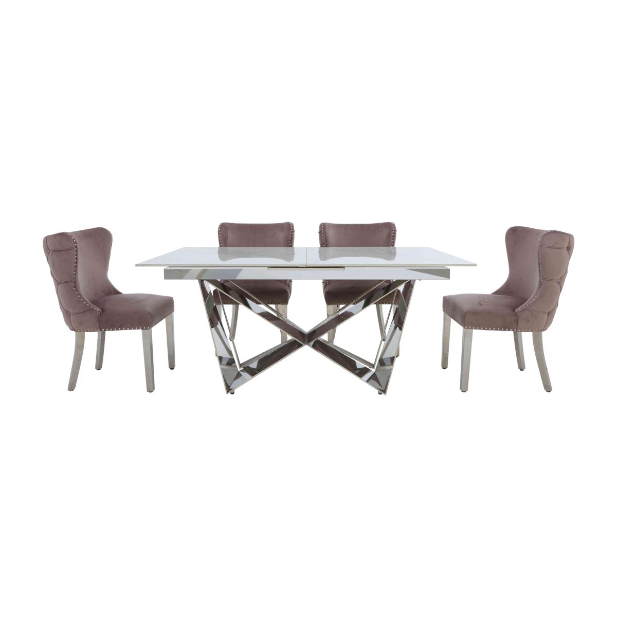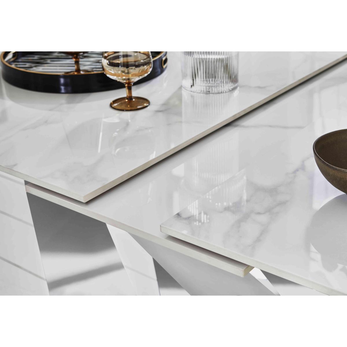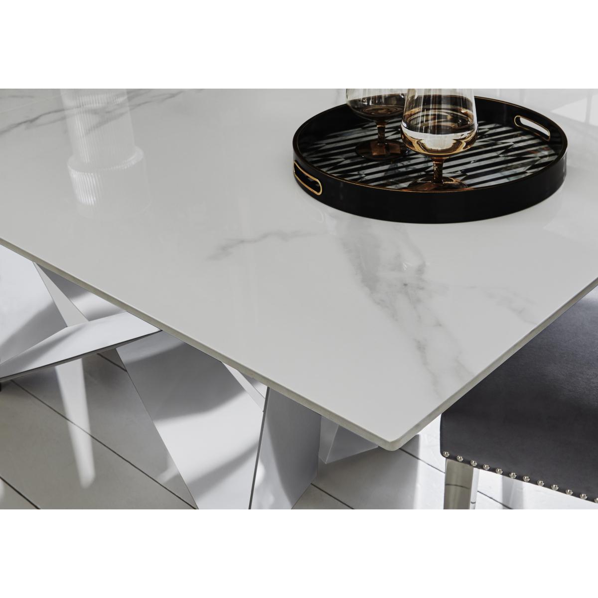 Can’t decide between bold urban style and modern glam luxury for your dining room? We have the very range for you. With glossy ceramic tops and artisan-made bases, our Marvel dining collection showcases statement style in a choice of two distinctly different looks for extending dining tables, dining sets, sideboards and occasional tables. Marvel Black features bold black iron bases that deliver a contemporary industrial vibe, while Marvel Chrome has high-shine chrome-effect bases for a gorgeously glam aesthetic. Each comes with its own style of elegant velvet-upholstered dining chair. Showstopping style two ways, only at Furniture Village. Even a smaller dining room can get the star treatment when you bring home this fabulous dining set. We love the combination of the high-shine table base with the high-gloss ceramic top. Why you'll love it. Luxury dining set is perfectly proportioned for a smaller dining space. Modern glam style with showstopping design details. Stunning angular chrome-effect base. Glossy marble-effect top is made of real 12 mm ceramic that won’t fade. Practicality meets style – ceramic is heat-, scratch- and chip-resistant. The extra leaf pops up to extend the table in seconds. With 4 statement button back dining chairs. Velvet upholstery in a choice of colours. Elegant details include chrome-effect legs and studding. Artisan-handcrafted and only at Furniture Village. This dining set is part of the Marvel Chrome range. What you need to know. Dining table seats 4 when closed and 6 when extended. This table is extremely heavy and should not be moved once in place. Chrome-effect base is made of polished stainless steel. The chrome-effect base may display weld marks or a wire-brushed effect. Please note that ceramic is not 100% heatproof. We recommend using coasters and placemats at all times. Easy to care for. Simply wipe with a clean damp cloth. Dining chairs are cushioned with foam. The flattening and shading of pile fabrics like velvet is unavoidable. Be sure to browse Marvel Black – it’s Marvel Chrome with an urban look.