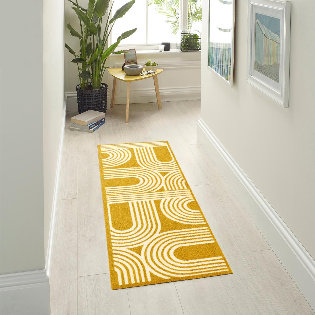 I think the yellow and white doormat is a fantastic choice for adding a cheerful pop of colour to an entryway. Its modern, curved design makes it versatile-works well in contemporary spaces, but can also bring a fresh touch to more eclectic or Scandinavian interiors. Practically, its washable feature makes it ideal for busy homes, and the bright hue helps to hide dirt, keeping the area looking tidy. To style it effectively, position it in front of neutral or light-toned floors to maximise its impact, and consider pairing it with matching or complementary accessories in yellow or white for a cohesive look.
