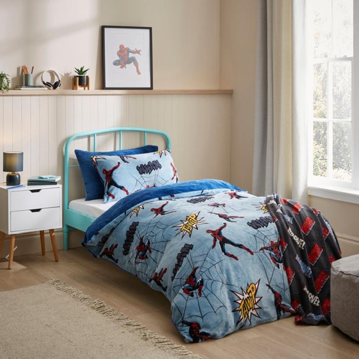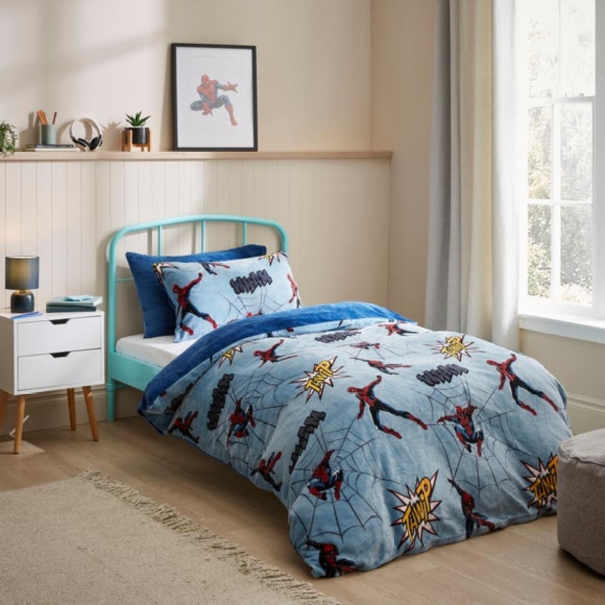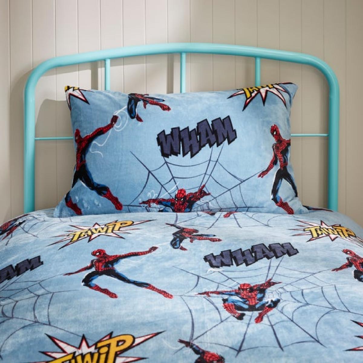 * Printed Spider-Man design * Includes standard pillowcase(s) * Soft touch fleece fabric finish * Machine washable * Secure button closure * Made from 100% recycled polyester Swing into action with our Spider-Man Duvet Set! Featuring a cool Spider-Man design and a super soft fleece fabric finish, this set is perfect for any young superhero fan. It includes standard pillowcase(s), has a secure button closure, is machine washable, and is made from 100% recycled polyester.