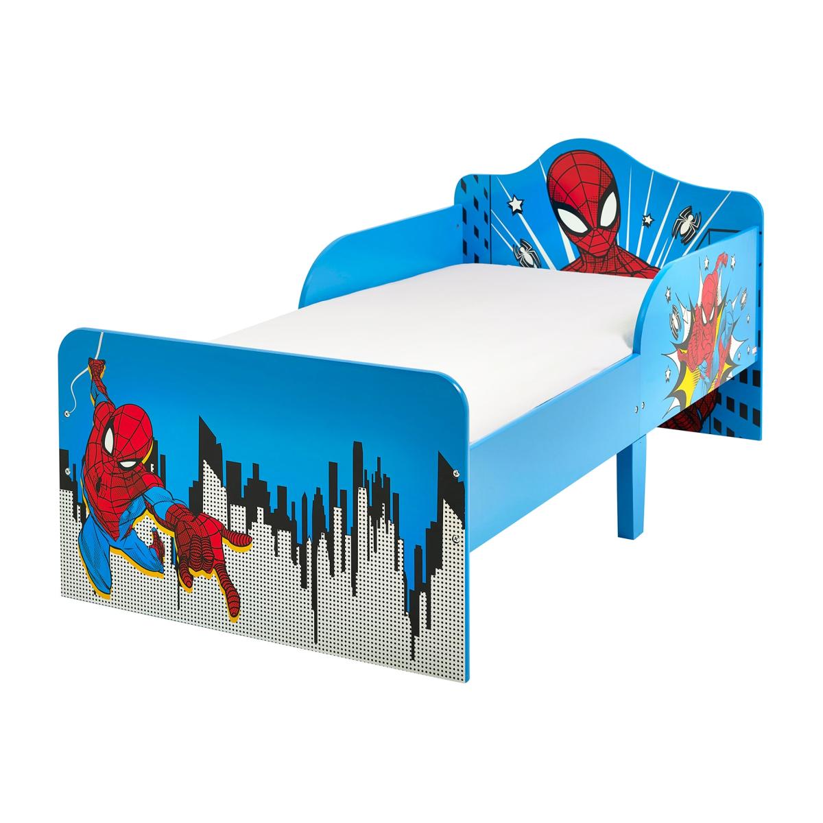 * Toddler Bed* Mattress not included Inspired by the iconic Marvel character, Spider-Man, this bed brings the excitement of web-slinging adventures right into your child's room. Crafted with attention to detail and featuring vibrant Spider-Man graphics, it ignites the imagination and adds a heroic touch to bedtime. The low height and sturdy build ensure safety and ease of access for toddlers transitioning from a crib to a bed.