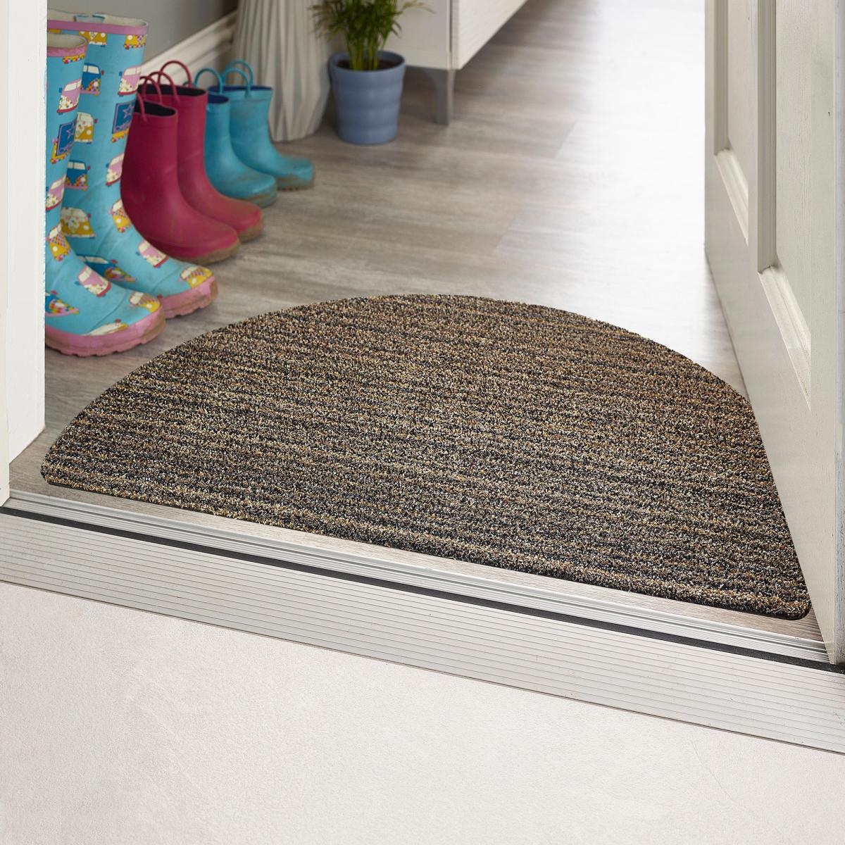 I really like this half-moon doormat - it’s a practical piece that adds a bit of character right at the entrance. The stripe pattern and the combination of grey, brown, and yellow make it versatile enough to suit both modern and more traditional exteriors. It works especially well in neutral or earthy colour schemes, where it can complement natural materials like wood and stone. For styling tips, consider pairing it with outdoor planters or lighting in warm tones to create an inviting threshold. Its half-circle shape also helps to soften the look of a porch or hallway, making it both functional and visually appealing.