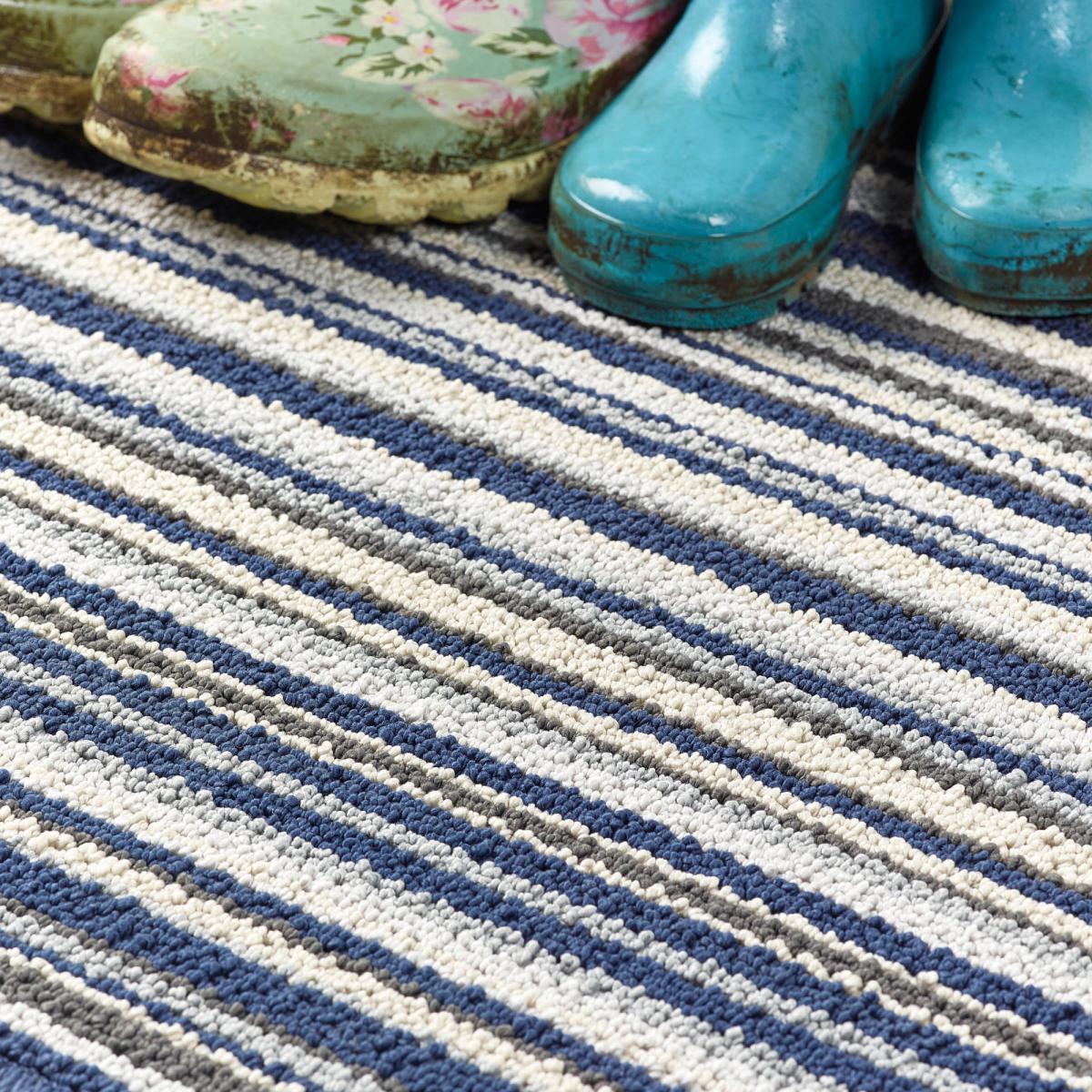 Boasting an attractive striped pattern, this Marvel Washable Doormat is ideal for adding a stylish and practical touch to your doorways. This mat has a tough scraper incorporated into the mat, that traps dust, dirt, and mud. With an anti-slip backing, this doormat is secure and easy to clean. Please note: machine wash at 30° and line dry.