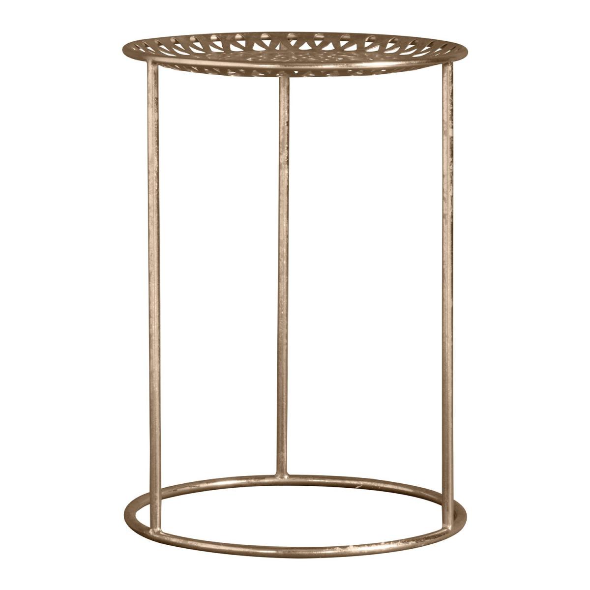 This metal side table has a special handmade quality and artisanal feel. Finished in bright gold, this table is the perfect finishing touch for your living space.