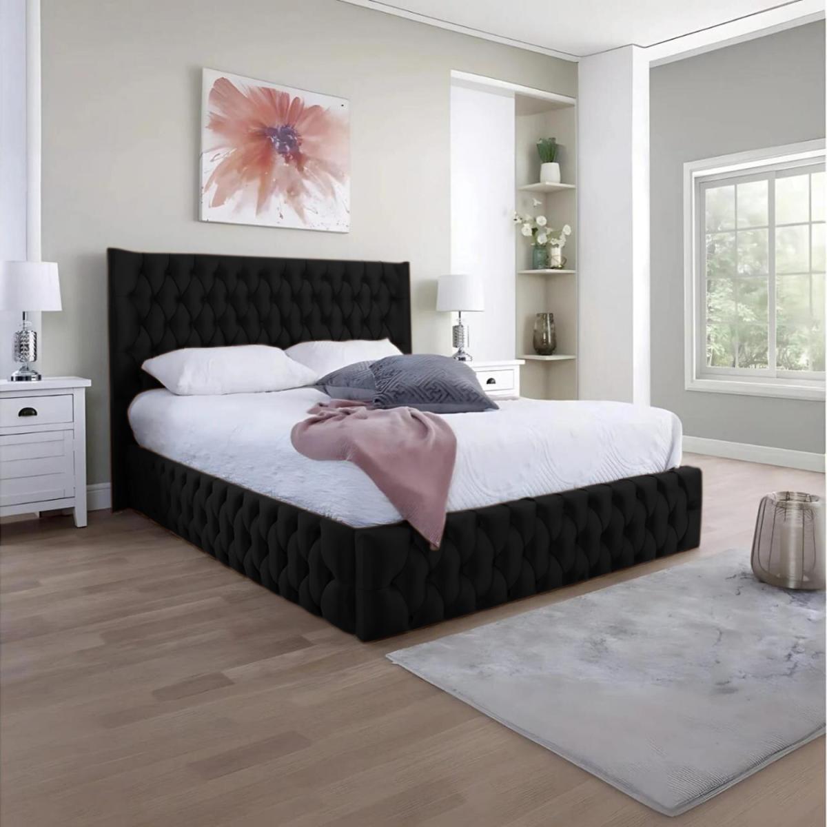 I’d pick this black velvet, button-tufted bed for its mix of texture and simplicity - it anchors a room without feeling heavy. It suits contemporary or slightly glam schemes, and even works in a pared-back, Scandi-style space when paired with light walls and natural wood accents. For styling, choose crisp white or muted-tone bedding to contrast the deep upholstery, add a couple of metallic lamps on streamlined bedside tables, and layer a soft, pale rug at the foot of the bed to keep the look fresh and inviting.