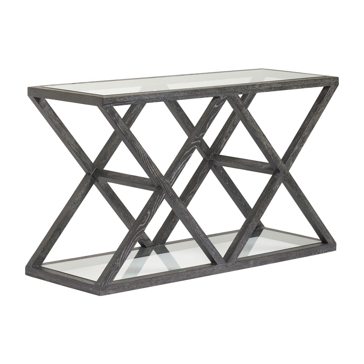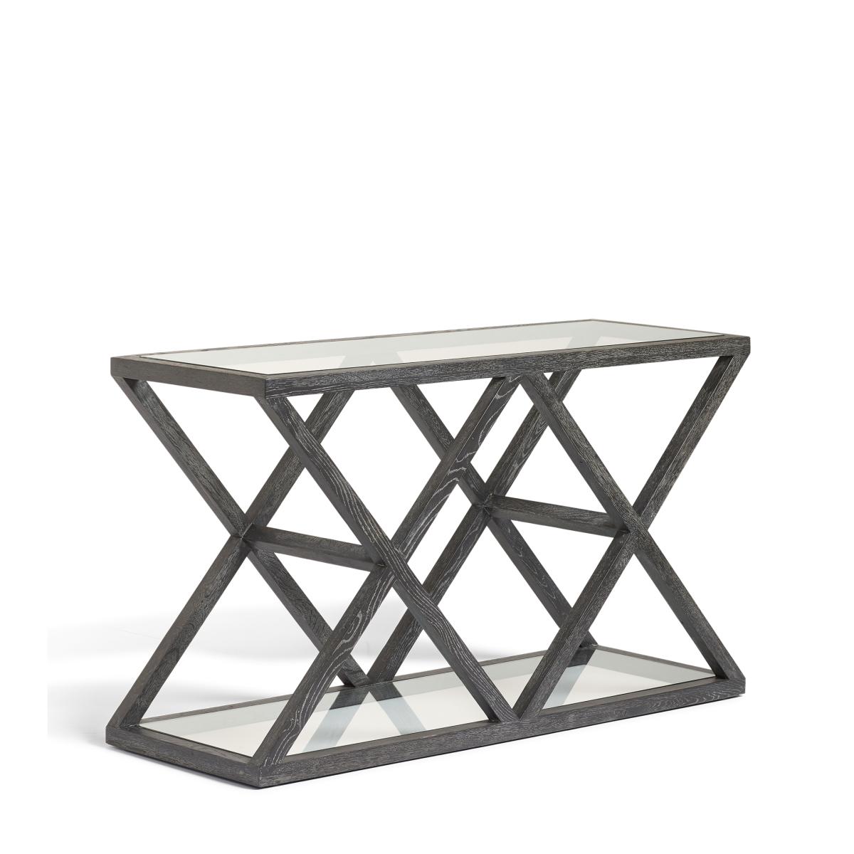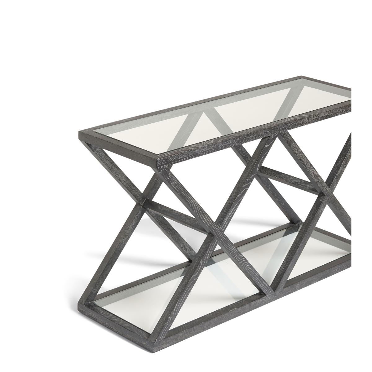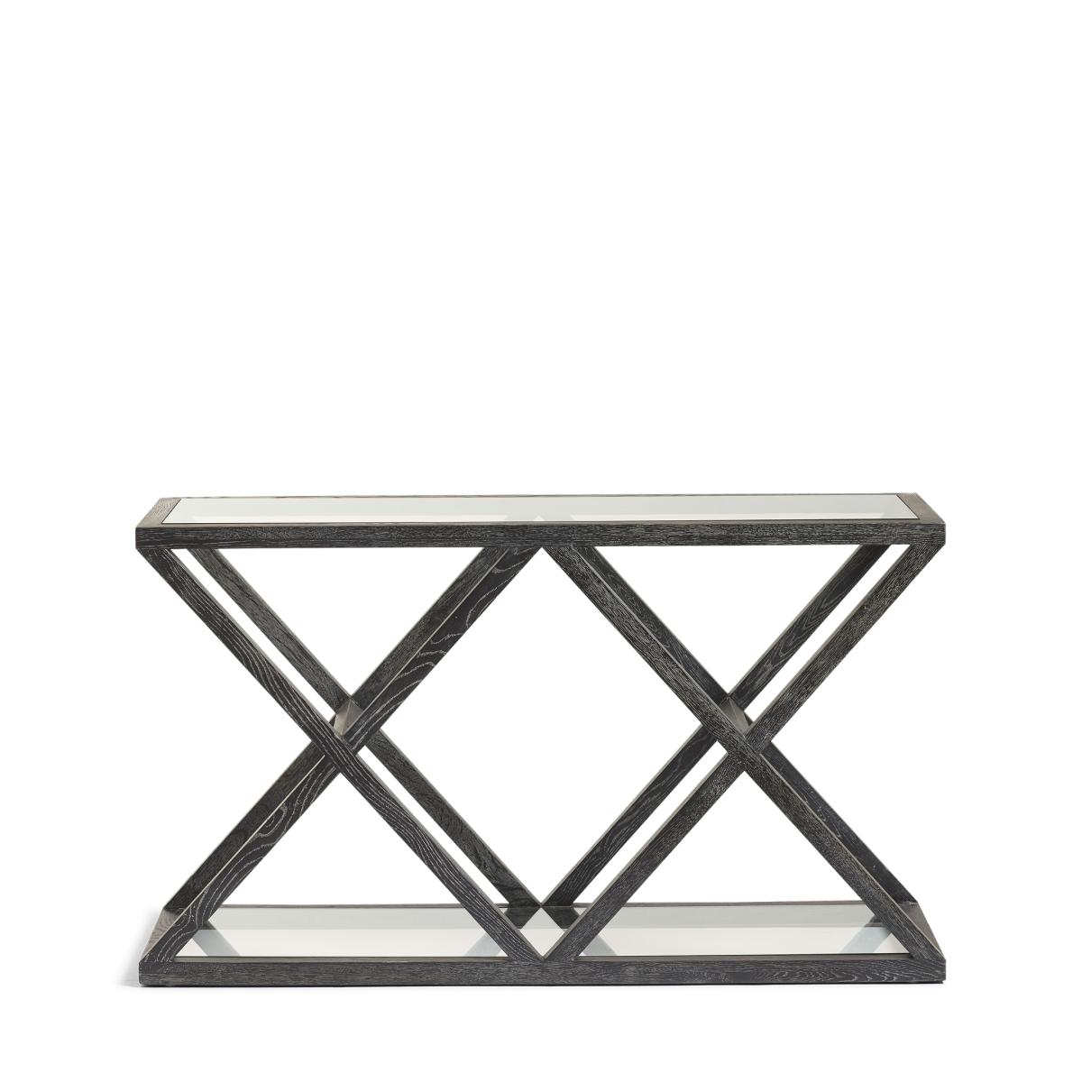 Our ever-popular Marylebone Range has received another update, this time quite literally upwards. Now you can enjoy its geometric solid oak frame in black, as a Console Table, complete with glass surfaces on its top and bottom.