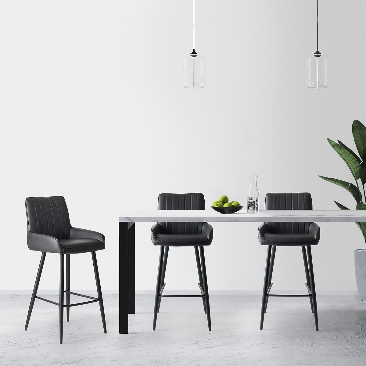The Marylebone bar stool is finished in an antique matte faux leather with a striking black metal frame, sure to complement any contemporary décor. Product Details • Set of 2 • Easy clean PU leather upholstery • Foam fillings • Metal frame • Assembly required • Fixings included • 12 month manufacterers guarantee • Recommended for use with higher bars and counters with table top height 100-105 cm. Product Composition - 90% Faux Leather & 10% Metal. Product Dimensions - 57 cm x 48 cm x 108 cm , Weight - 12 KGSeat height - 76 cm. Back height - 30 cm Package Dimensions - 64 cm x 60 cm x 53 cm, Weight 15 kg. Please check your measurements before ordering. We recommend purchasing stools to be no less than 15cm and no more than 25cm from the top of the stool to the underside of the countertop. Please note: this product cannot be be delivered to all Offshore Islands Northern Ireland or Republic of Ireland. This product will be dispatched by one of our trusted suppliers. You’ll be contacted by their selected courier about your delivery.