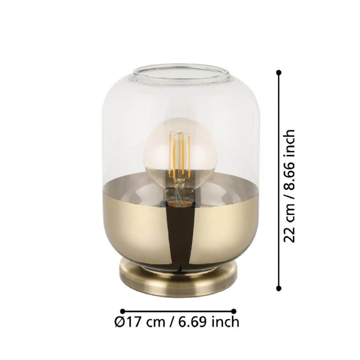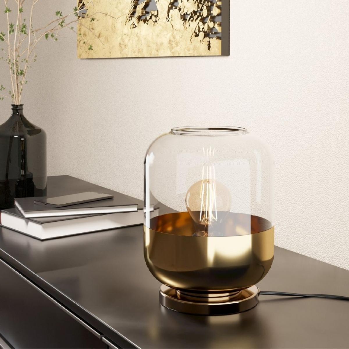 The Maryvilla table lamp features a lampshade made of clear glass with gold detailing at the bottom covering the lampshade and base. The table lamp can switch on and off easily using the in-line switch on the black cable. The product blends beautifully with modern interiors and provides stylish lighting, whether on the bedside table or in the living room, dining room or hallway. The product has an E27 lamp holder and requires 1 x E27 lightbulb, which is not included. The Maryvilla table lamp features a lampshade made of clear glass with gold detailing at the bottom covering the lampshade and base. The table lamp can switch on and off easily using the in-line switch on the black cable. The product blends beautifully with modern interiors and provides stylish lighting, whether on the bedside table or in the living room, dining room or hallway. The product has an E27 lamp holder and requires 1 x E27 lightbulb, which is not included.