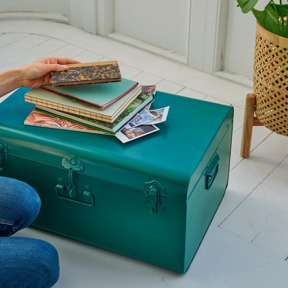 This Masa metal trunk is both practical and stylish with its triple fastening and carry handles !