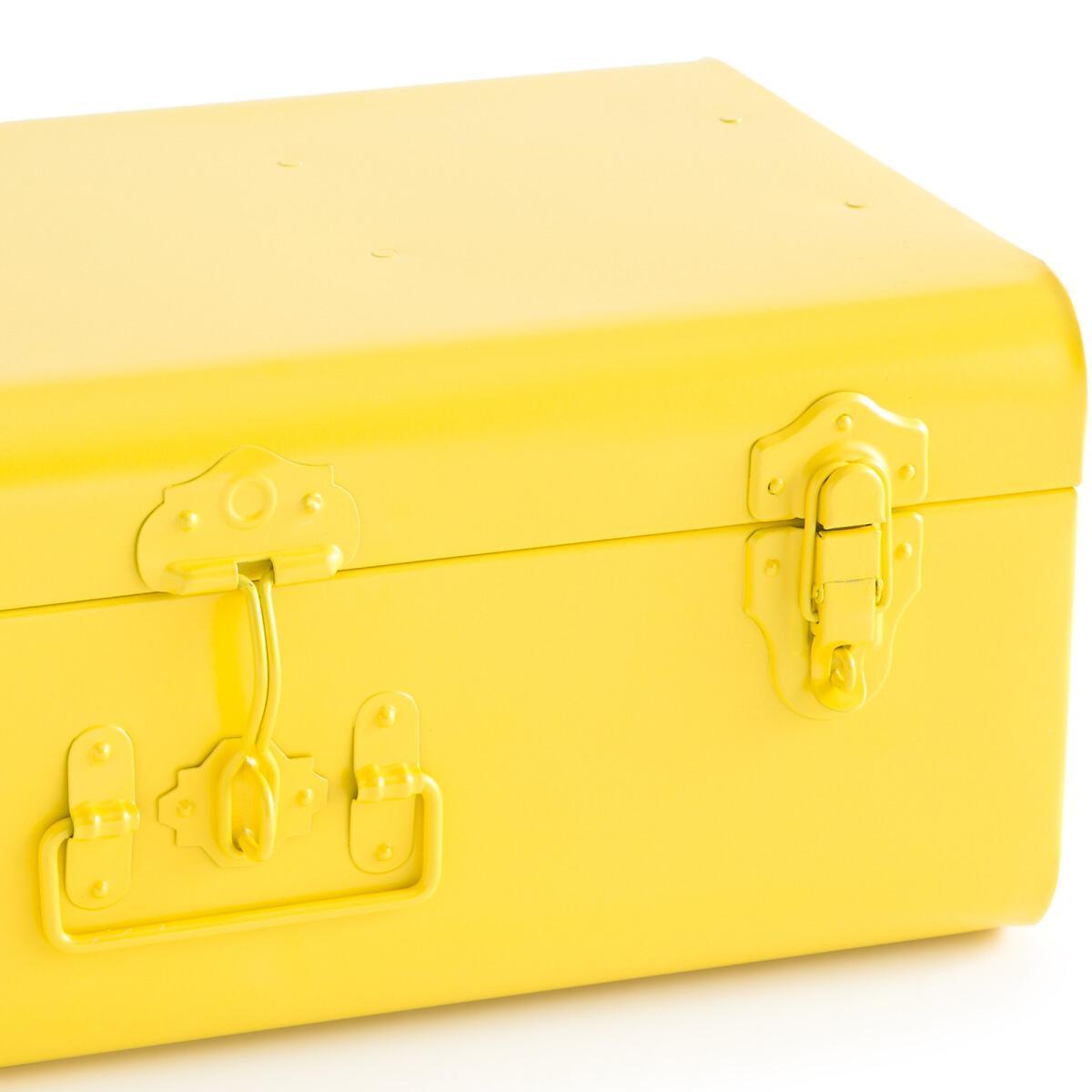 I love this yellow metal trunk for its playful yet practical vibe, making it a versatile piece for both storage and styling. It works particularly well in eclectic or modern interiors, where its pop of colour can act as an eye-catching accent. It’s perfect for storing linens, toys, or even as a statement coffee table or side table in a living room. To style it effectively, consider layering with textiles like a cosy throw or placing a decorative tray on top - a great way to utilise its surface space. Its durable metal construction also makes it suitable for outdoor or porch use, adding a vintage-inspired touch to your exterior spaces.