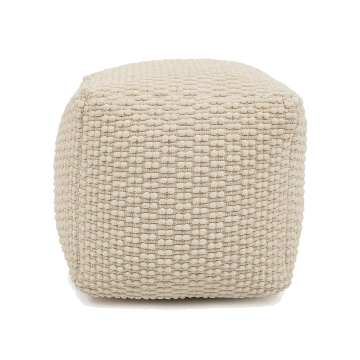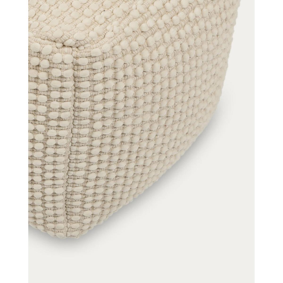 I love this pouffe for its versatile and textured design, making it an easy addition to both modern and cosy interiors. Its neutral white colour allows it to blend seamlessly with a variety of colour schemes, while the cotton and polypropylene blend adds durability and a soft feel. It's perfect as a footrest in living rooms or as extra seating in relaxed, informal spaces. To style it effectively, consider pairing it with neutral or muted tones to maintain a fresh look, or add colourful accessories nearby to create a vibrant, inviting corner. Its compact size also makes it ideal for small spaces, where it can be moved around effortlessly to fit different needs.