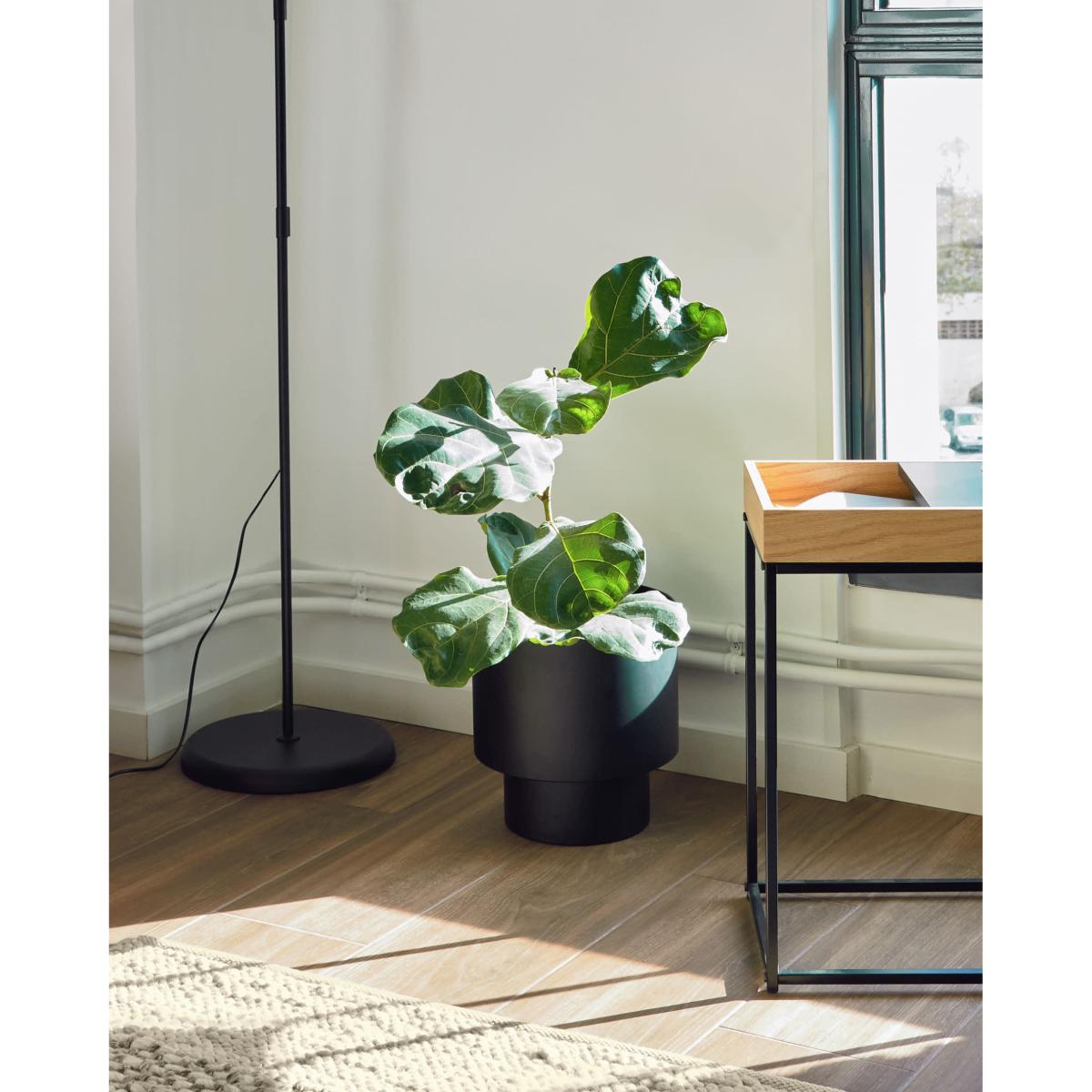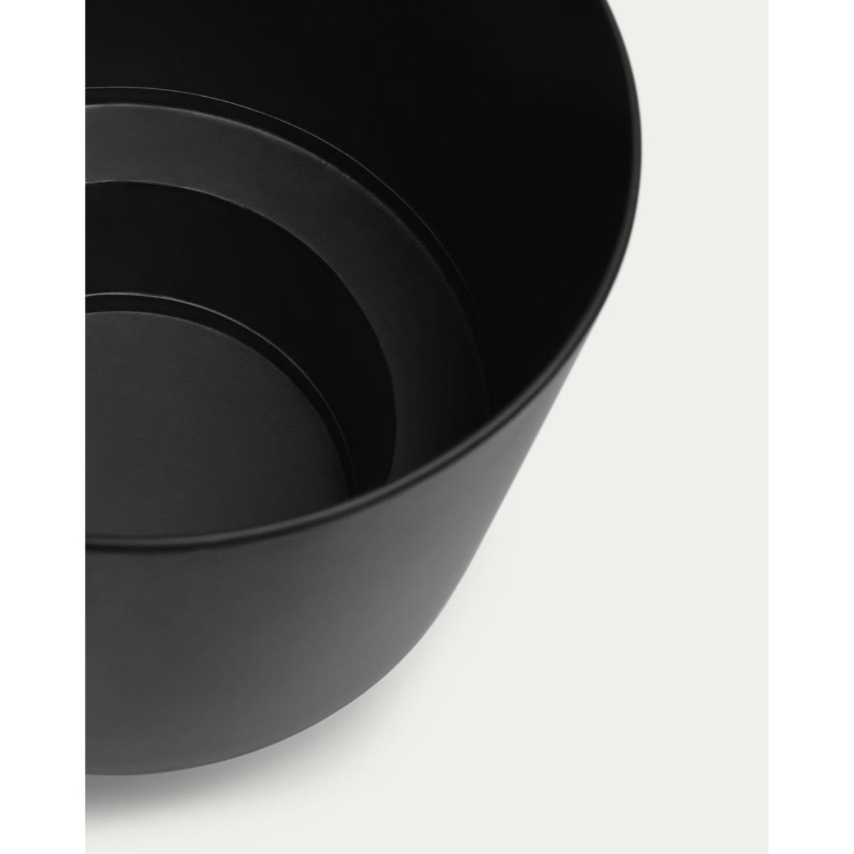 I love this black metal pot for its sleek, minimalist look, which makes it a versatile choice across various interior styles, from modern and industrial to Scandinavian interiors. Its matte finish adds subtle sophistication without feeling heavy, perfect for both tabletop displays and plant shelves. Practical styling tips include grouping it with other textured materials like concrete or wood for contrast or using it as a standalone statement piece with a tall, sculptural plant. Its size (Ø 28 cm) works well for larger statement plants or multiple small ones, making it an excellent choice for adding greenery to living rooms, offices, or even outdoor spaces with protection.