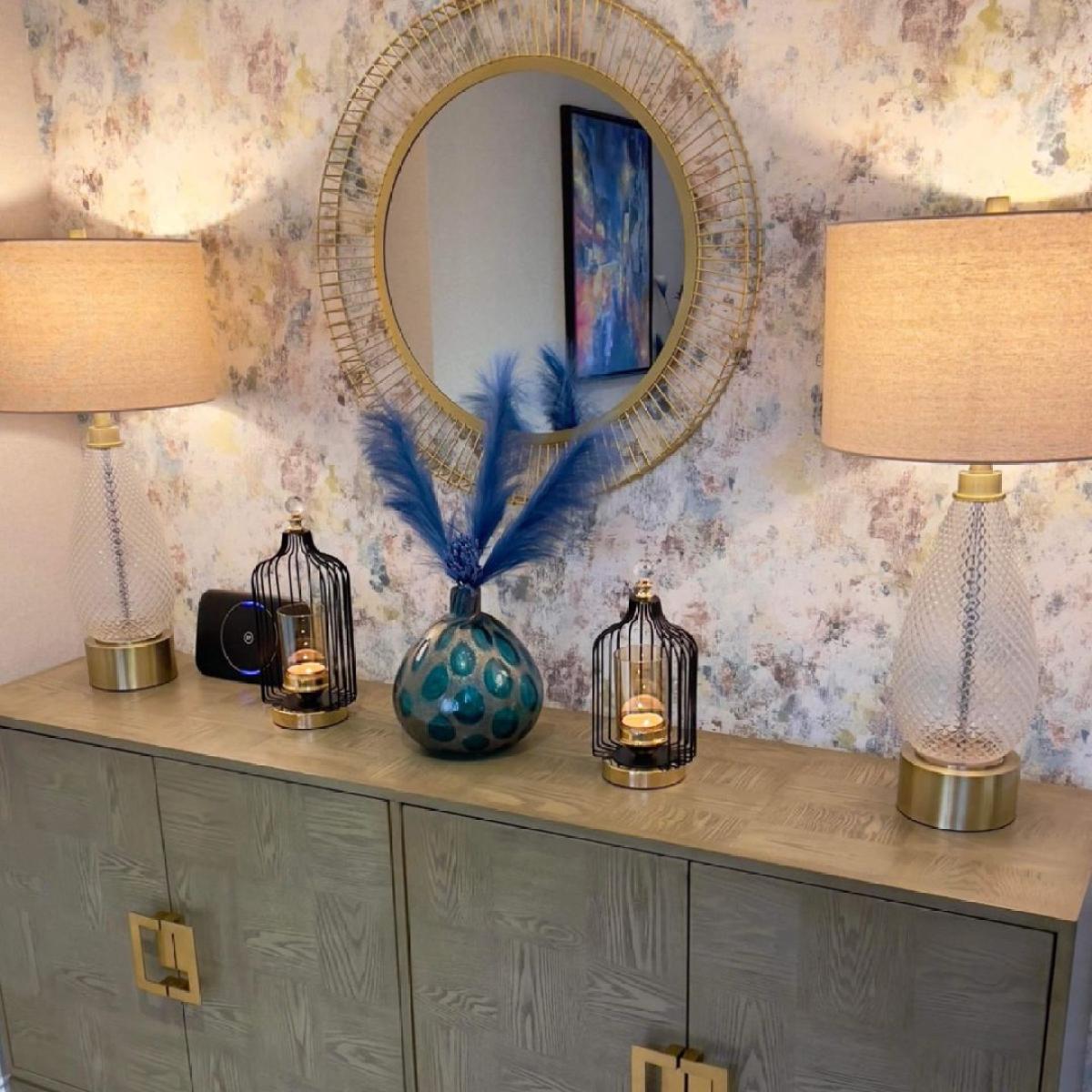 I’m a fan of this gold round mirror for its slim, sculptural frame that catches light without overwhelming a space. It works particularly well in hallways or above a console in living rooms styled with warm woods and muted tones - think Scandi schemes or relaxed mid-century interiors. To style, hang it solo over a narrow side table to create a welcoming focal point, or group it with smaller artworks and wall hooks for a gallery-style display. Its reflective surface also helps bounce daylight into darker corners, so position it opposite a window if you can. Pair with other brass or gold-tone accents - lamps, picture frames or decorative bowls - to tie the room together.