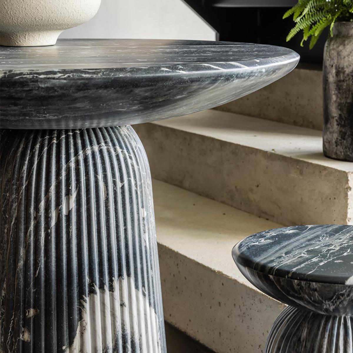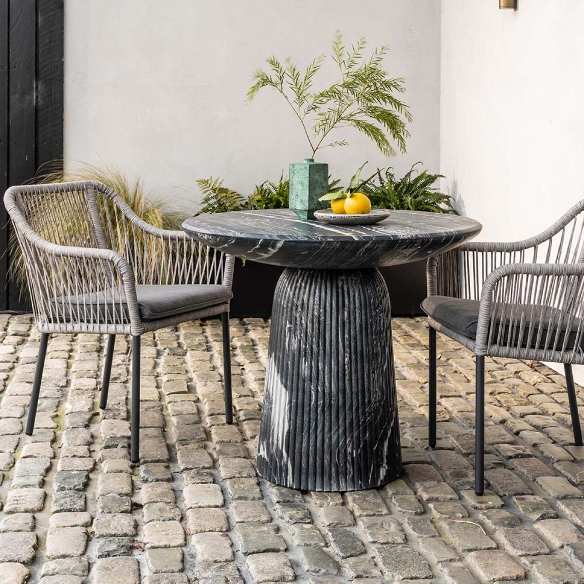 A luxurious statement indoor-outdoor piece, our Mason Bistro Table is innovatively produced using concrete with a marble-finish effect to create the illusion of a hand carved solid stone table for an elegant and solid design at an affordable price. Inspired by classic Roman Italian marble columns, the Mason dark grey marble effect dining table will bring a classical feel to both indoor and outdoor spaces. The Mason range is weatherproof, so you can leave it outside on the terrace or patio all year round. Team with our matching Mason Stool to dine in style.