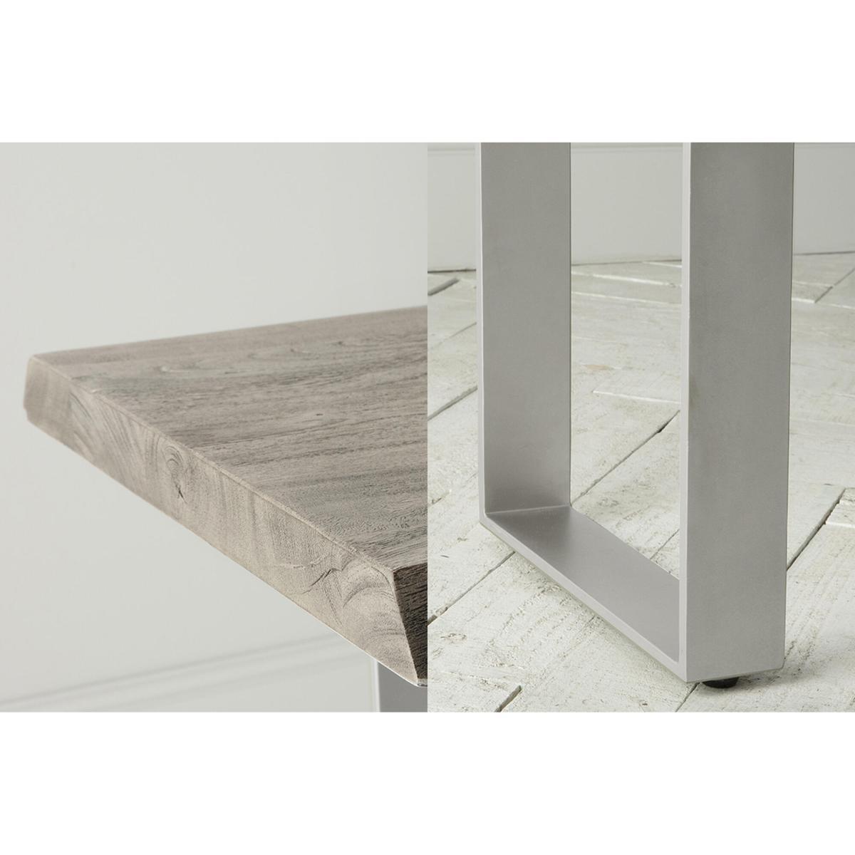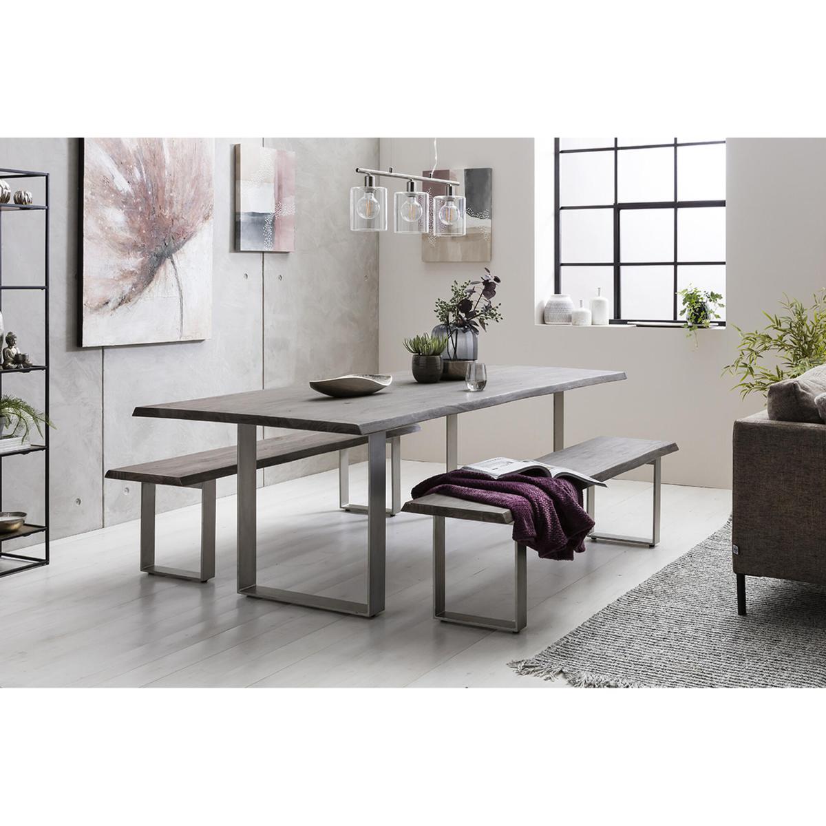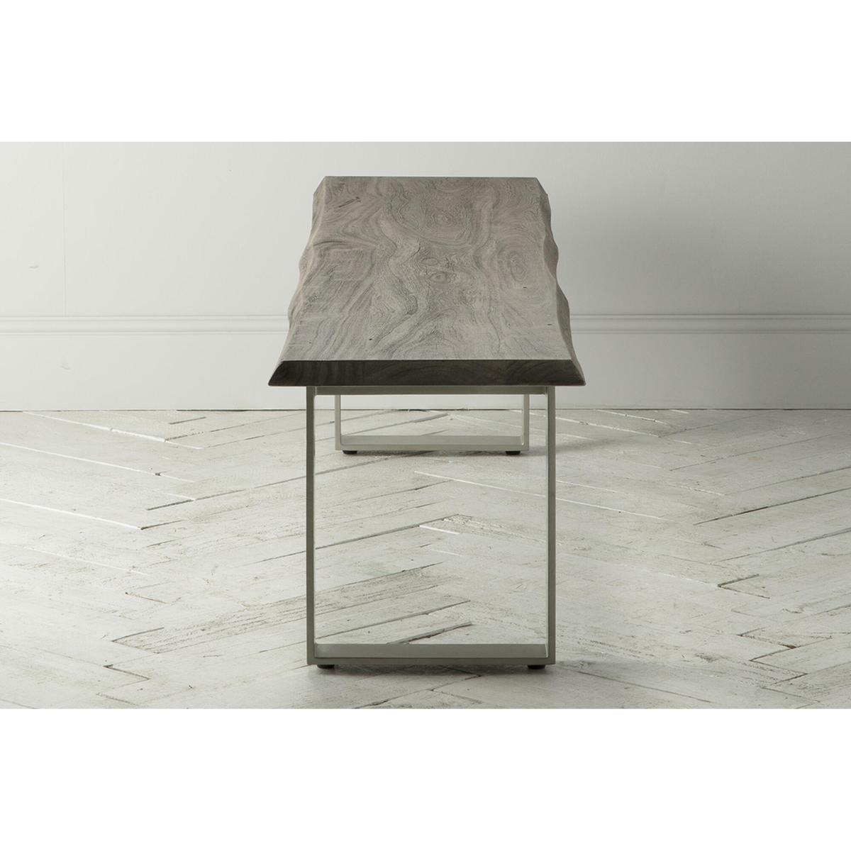 A sophisticated touch of rusticity. Create the entertainment room of your dreams, the Mason range will stand out and command attention, from the most elegant of dining rooms to the most simple of kitchens. Pared-back design with long, slab wooden waney edge table top with a subtle smooth weathered finish. Mixed beautifully with silver powder coated iron legs to balance the industrial design with a touch of modern country.