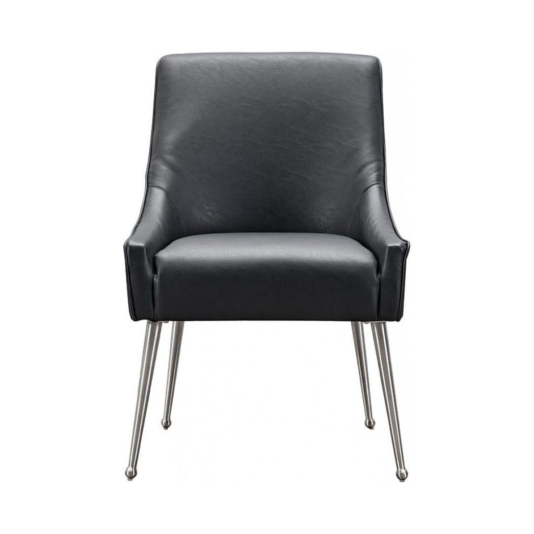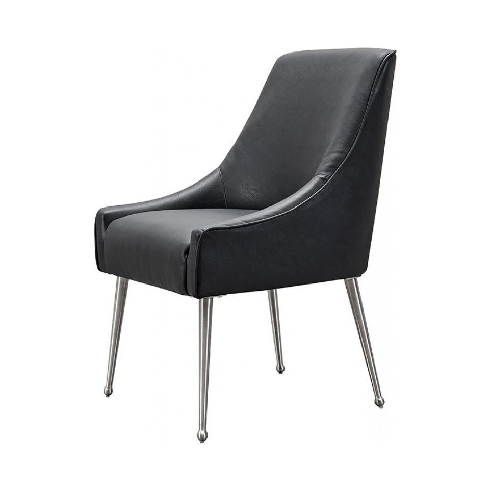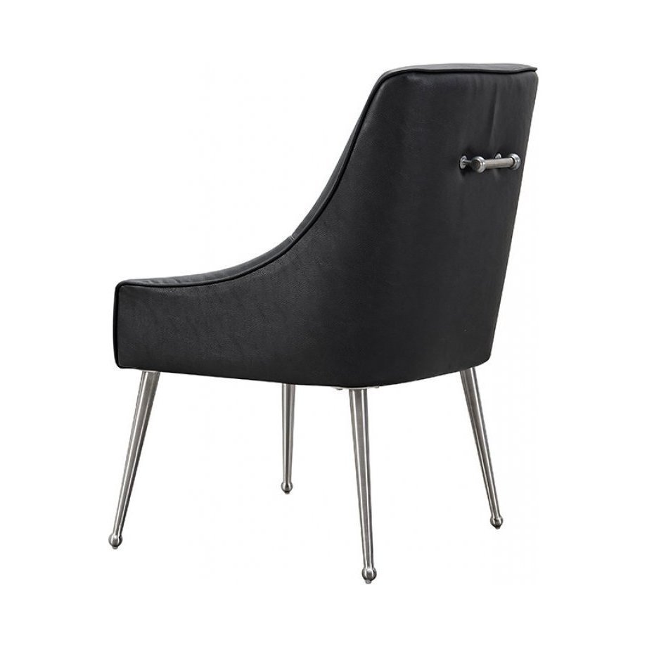 Mason Dining Chair Black Faux Leather - Brushed Silver Legs