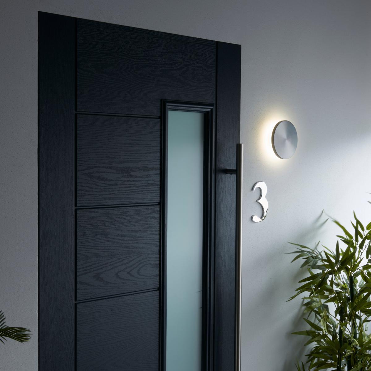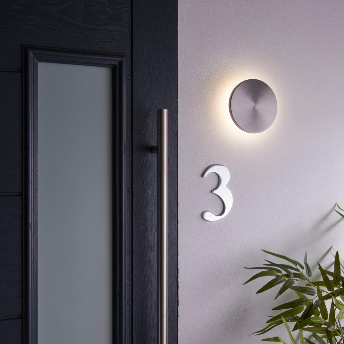 Sleek and modern, the Mason Disc outdoor wall light features a unique design that would bring a stylish touch to your porch or patio. This light is IP44 rated and is crafted from a durable, brushed finished aluminium alloy for a stylish look.