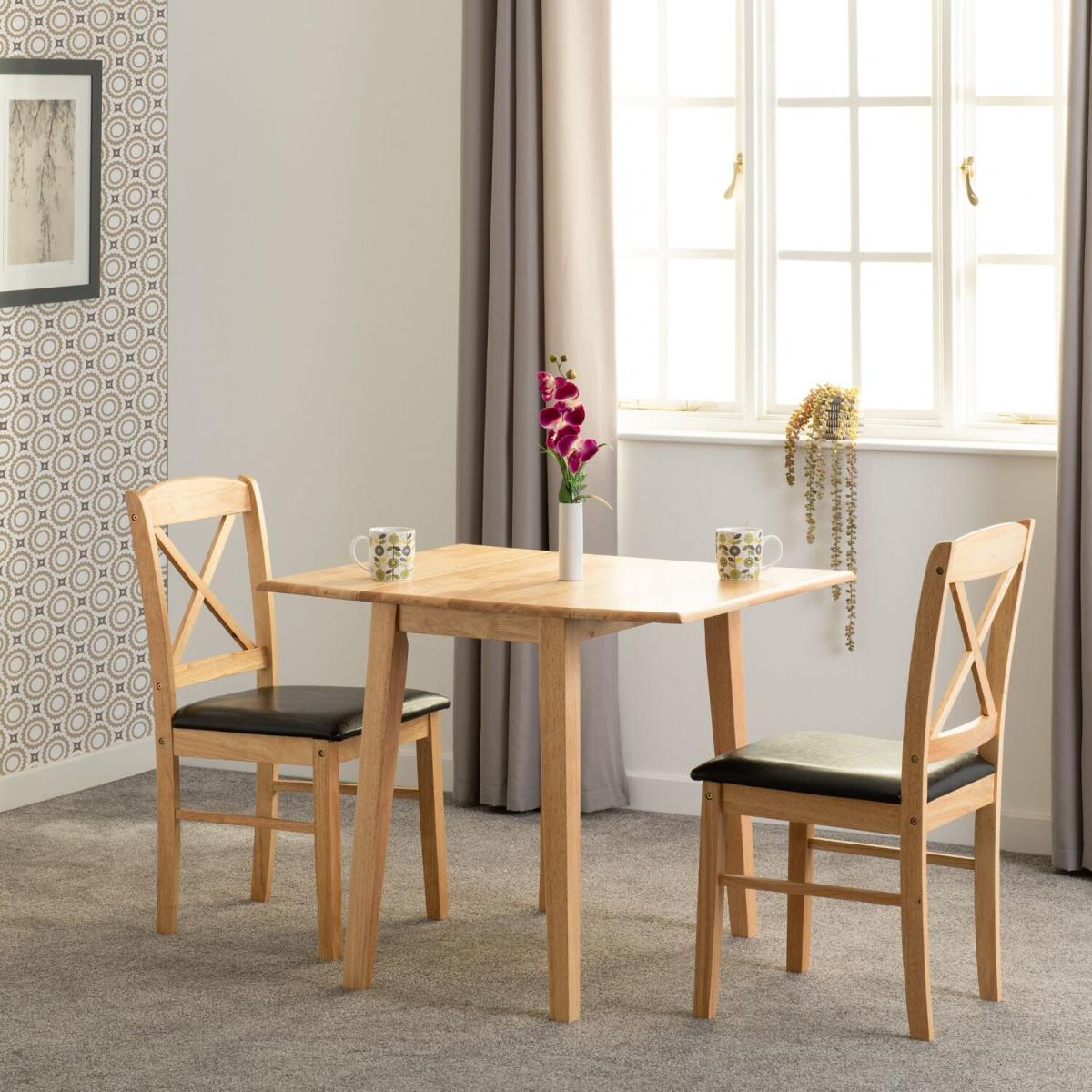 Add a touch of class to your dining space with this beautiful dining set. Comfortable design with faux leather seat pad making this seat a perfect addition to any dining space. Perfect space saver with its drop leaf design. UK Mainland delivery only, between 9am - 9pm (weekdays) the courier will contact you on the day of delivery to offer a time slot. This takes place within 10 working days (Ground floor only). Please also ensure that we have a note of your up-to-date address and contact information to be passed to the couriers.
