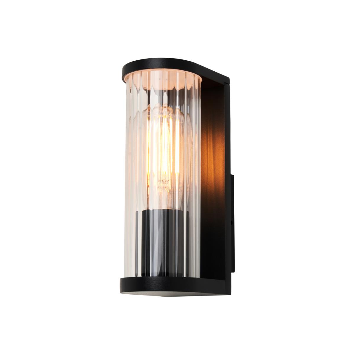 Create a chic entranceway look with the Mason Outdoor Wall Light with Ribbed Glass Shade in Black. The ribbed glass of this IP54 wall light refracts the glow to create a stunning effect across your patio or decked area. The black finish of this 1 light garden wall lamp combined with the vintage design brings a timeless accent to the facade of your home.