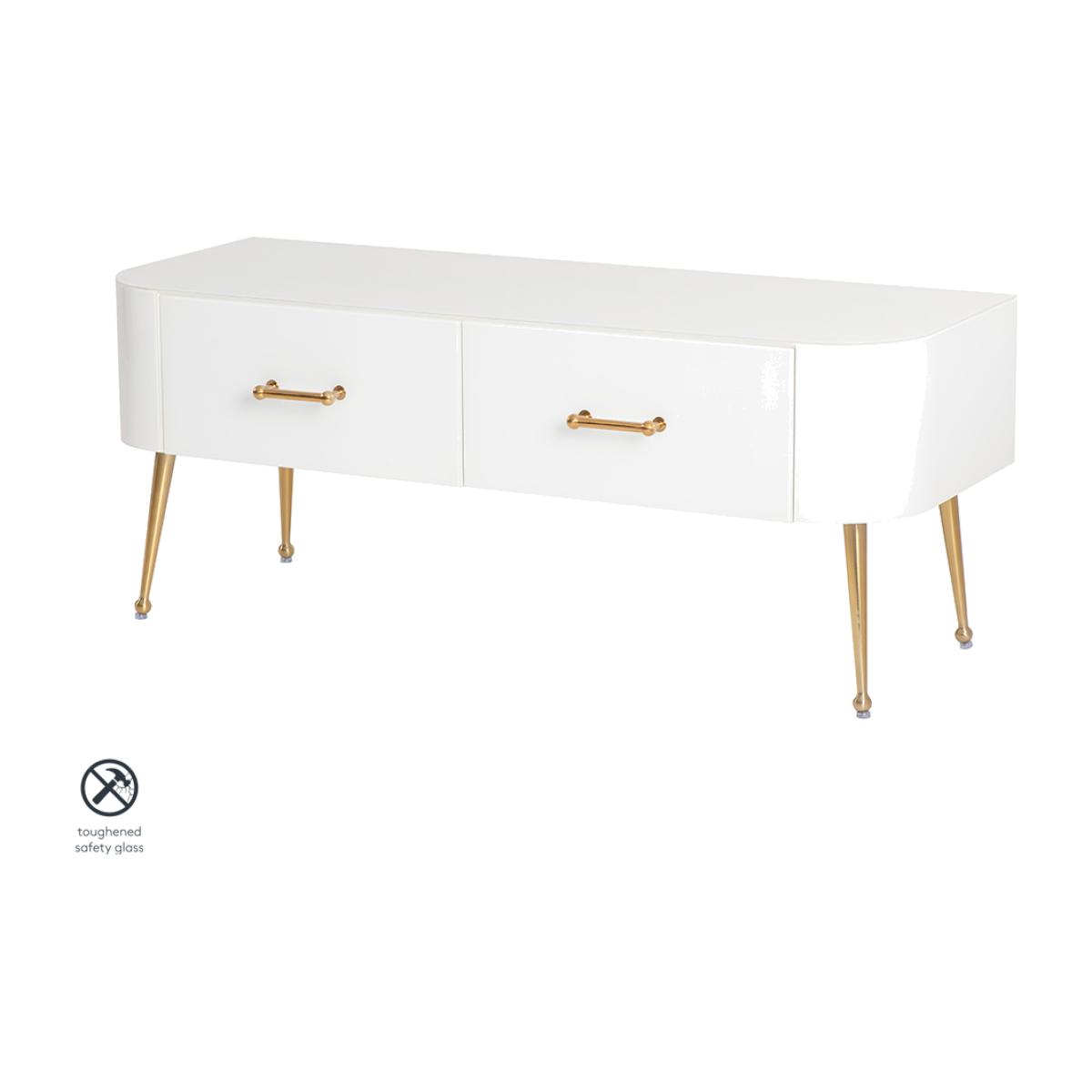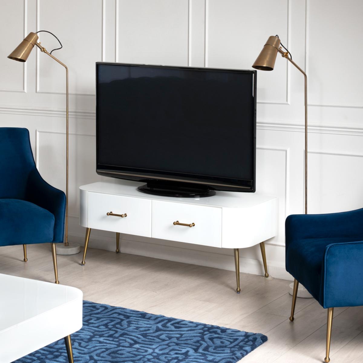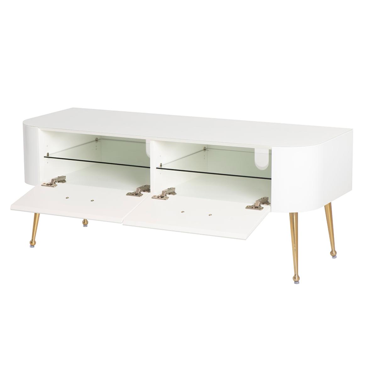 Mason White Glass TV Media Unit – Brushed Gold Legs