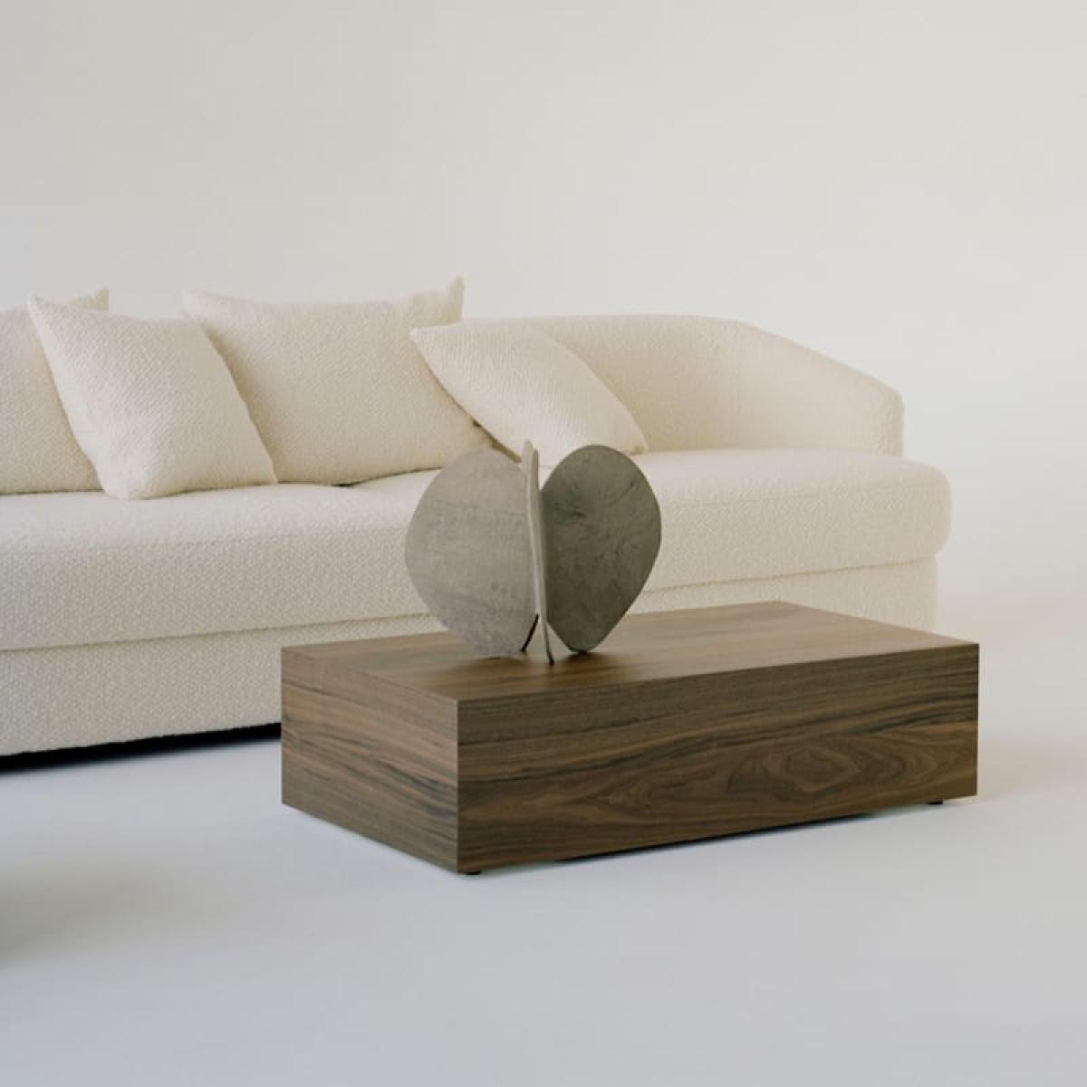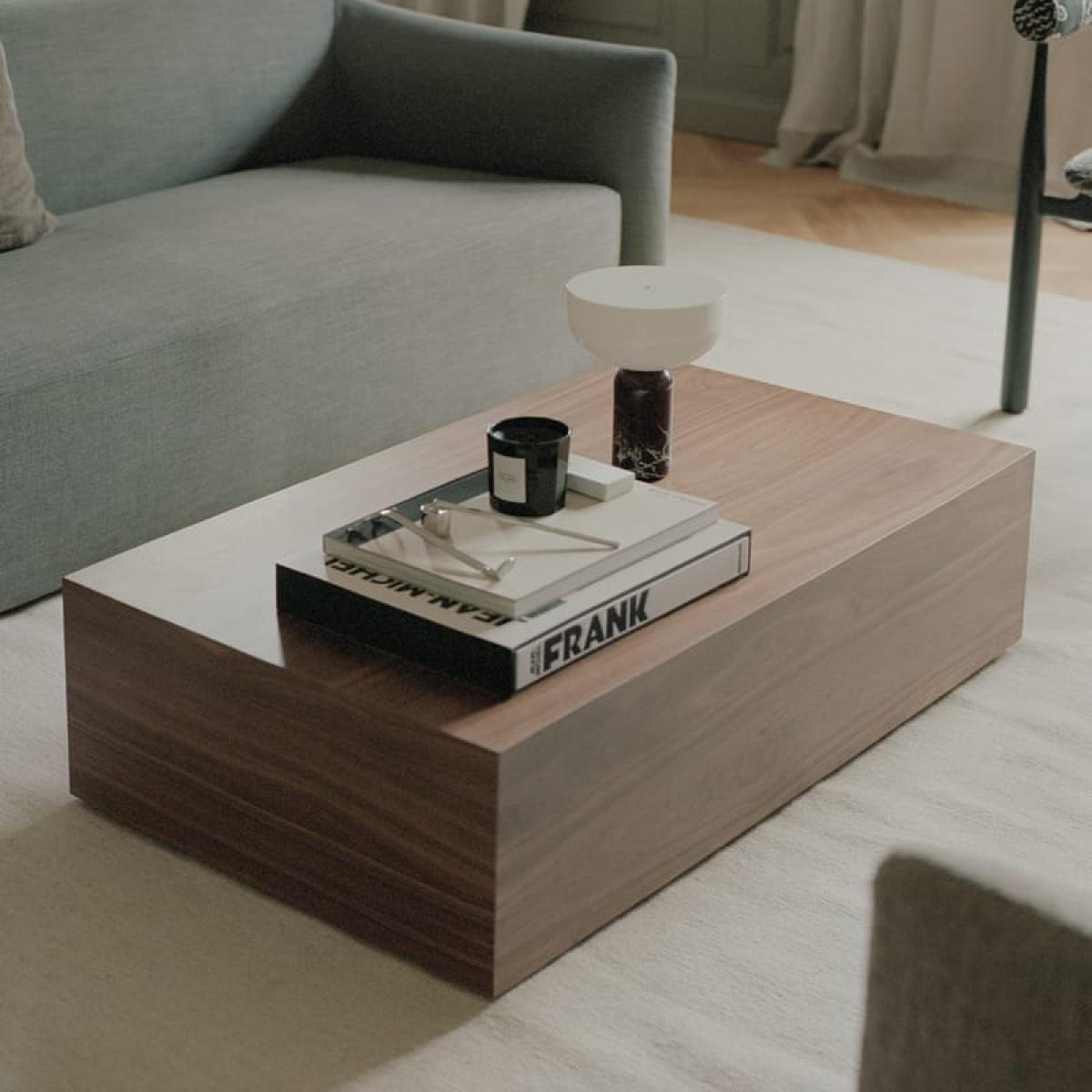 Mass coffee table: the essence of high-end Scandinavian designA perfect balance of craftsmanship and modernityInspired by Scandinavian design, the Mass coffee table combines traditional craftsmanship with contemporary functionality. Its clean lines and understated elegance blend perfectly with any refined interior. Refined, sculptural aestheticsWith its matte lacquered Walnut veneer, the Mass coffee table offers natural warmth. Its minimalist design makes it a centerpiece of the living room, adding a sophisticated, timeless touch. Versatility for every spaceOn its own or as a duo, it's perfect for both small and large spaces. Its harmonious format blends seamlessly into contemporary interiors. Quality and durabilityIts Walnut veneer ensures strength and longevity, while highlighting the natural nuances of the wood. A signature piece for design loversIdeal for enhancing a living room, the Mass coffee table combines aesthetics and functionality with high-end design. Embrace the timeless elegance of Scandinavian design with the Mass coffee table. In detail: Variation : 103 x 60 x H 27 cm / Walnut Brand : NEW WORKS Designer : Lim + Lu Type : Coffee table Colour : Walnut Material : Walnut veneer, mat lacquer finish Dimensions : 103 x 60 cm x H 27 cm Weight : 50.6 lb Show less