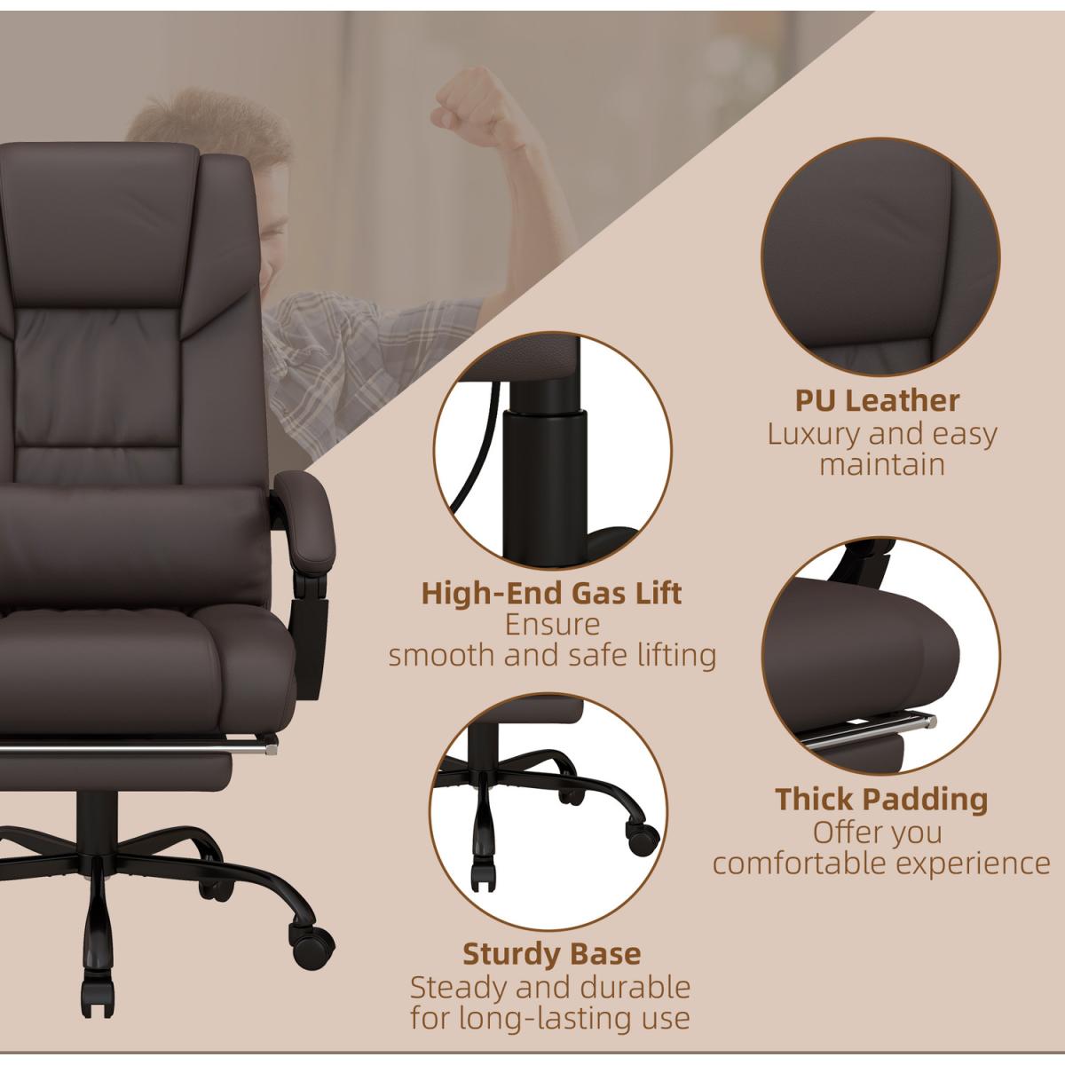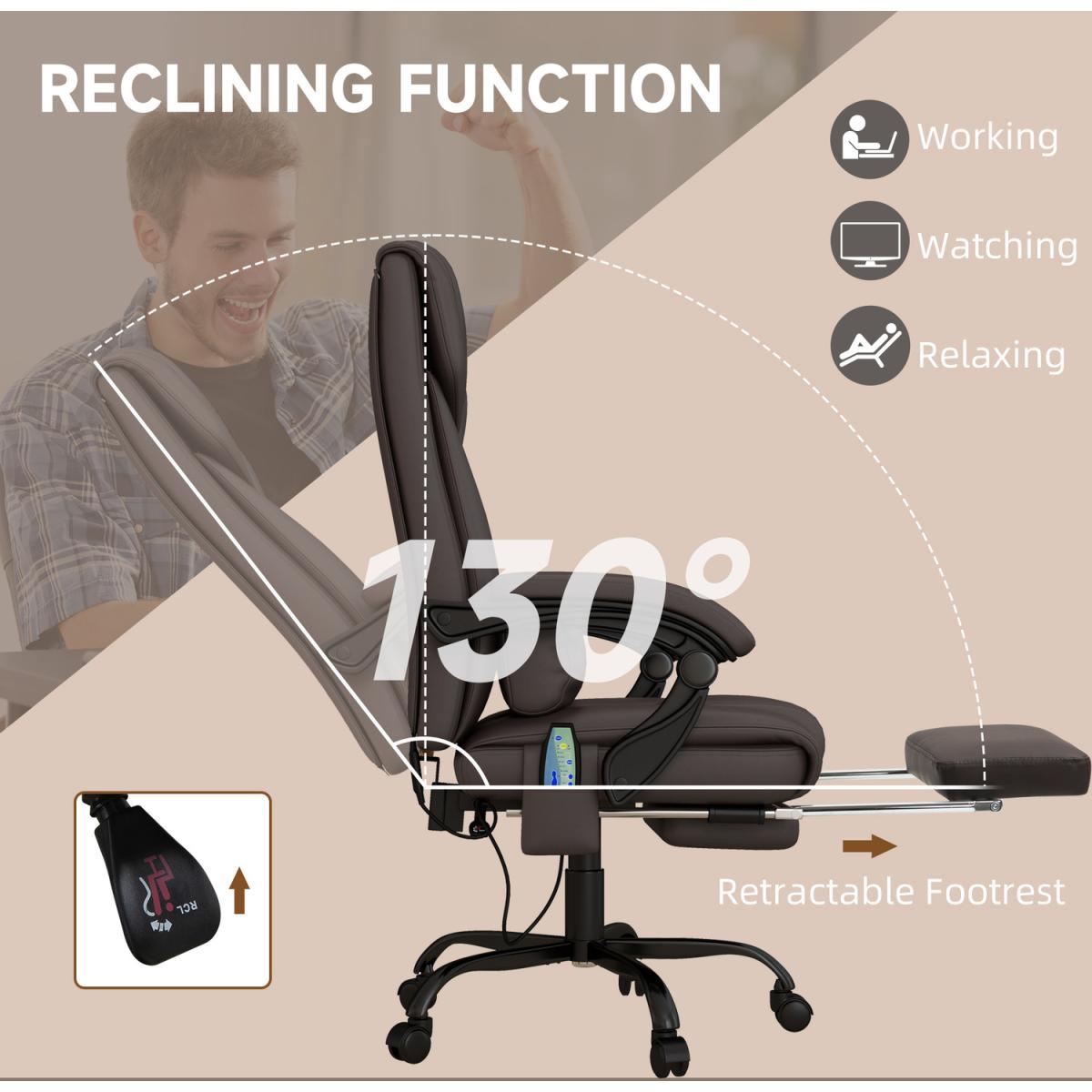 Massage Office Chair with 6 Vibration Points Footrest - Brown