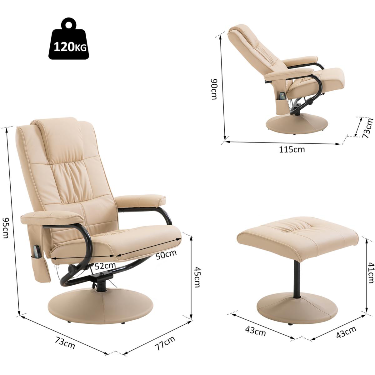 Give yourself a therapeutic massage whilst watching the TV. Our fantastic reclining armchair won't just amazing in your lounge...it will also massage your stress away (and on the footstool too). Why spend your money being pummeled by a heavy handy masseuse! Massage force and heat temperature are provided preset on 9 modes which can be manually adjusted.