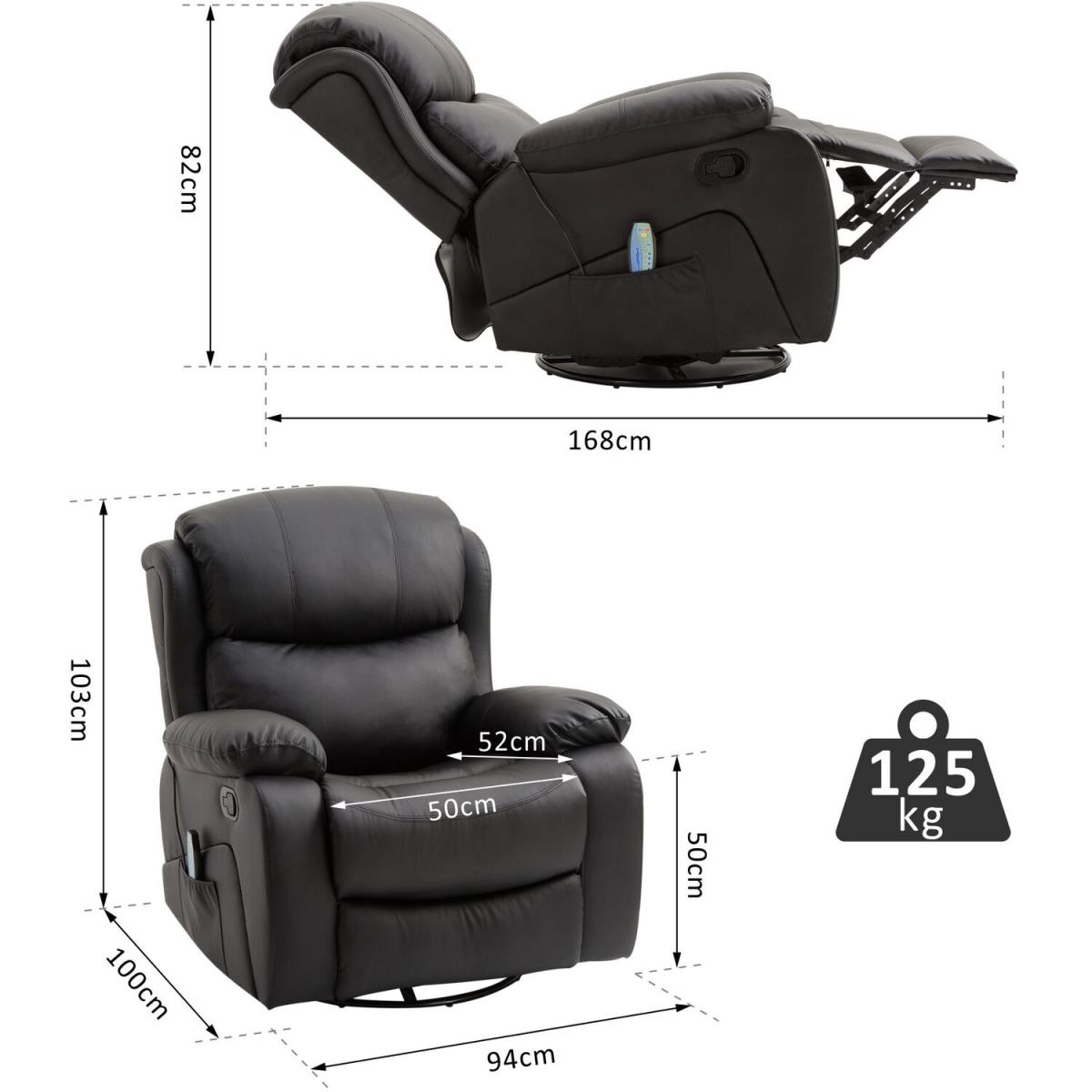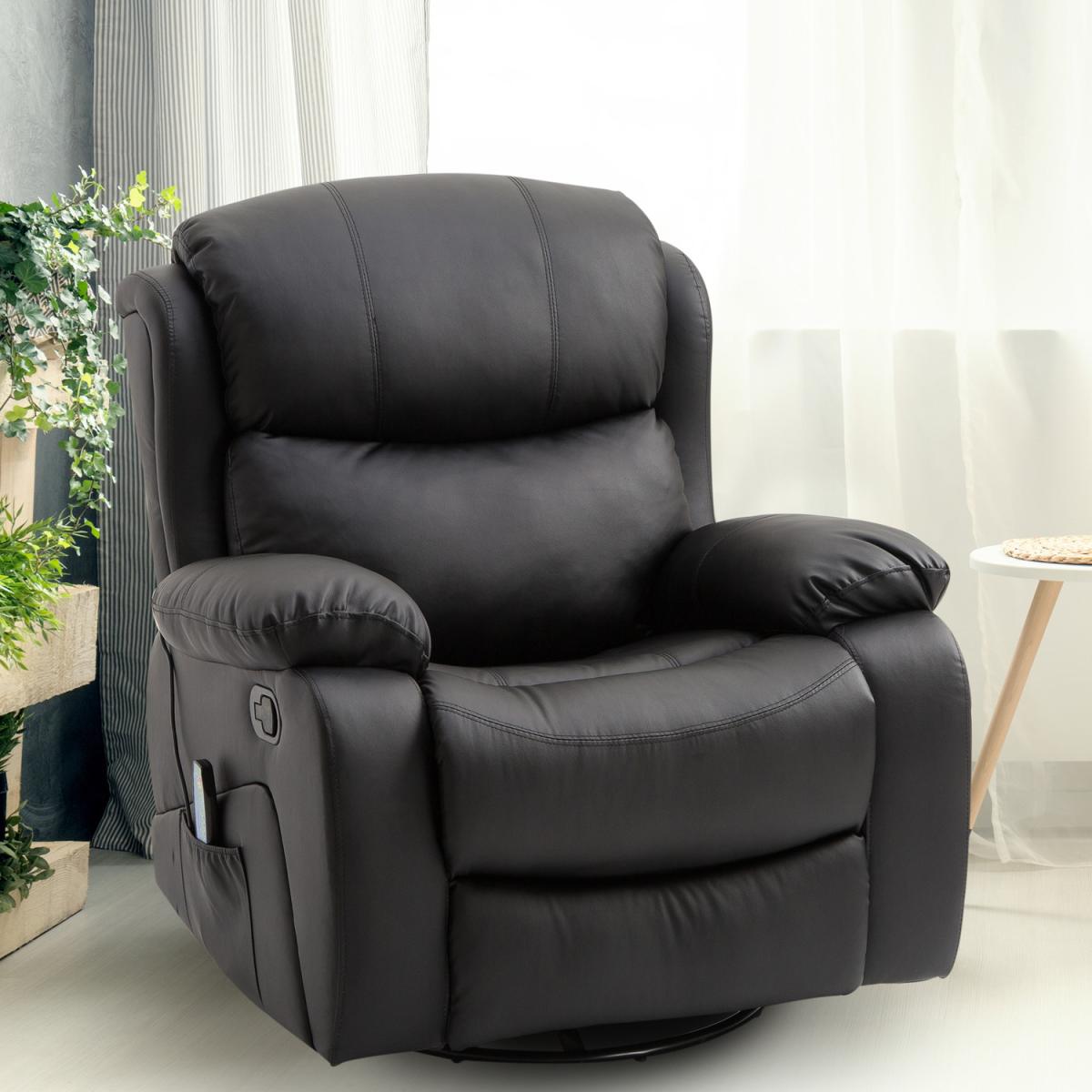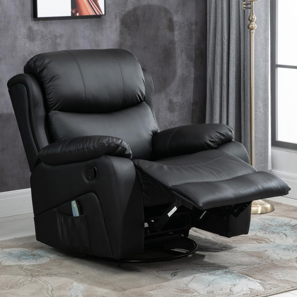 Massage Sofa Chair PU Leather Heating Recliner - Black