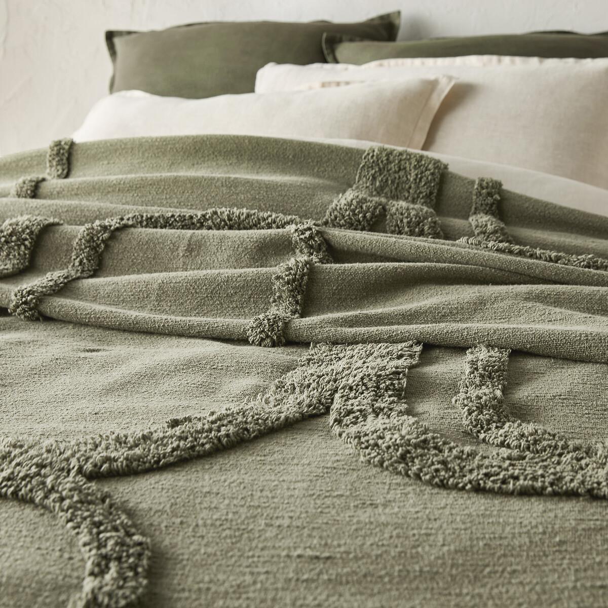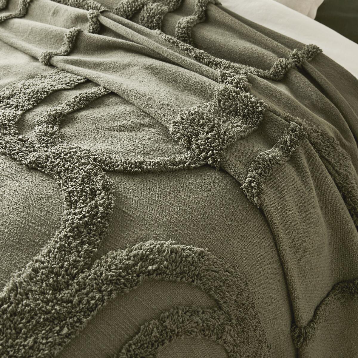With its graphic pattern inspired by the 60s, the Massimo tufted cotton bedspread immediately gives character to your bedroom. Placed on a bed or sofa, it completes the decoration with elegance. Inspiring, easy to live with, trendy... these products have become our customers' favourites. and no doubt yours!. An internal design by Isabelle Olejniczak :"With its geometric print and rounded tufted lines, the Massimo bed throw, in pure cotton, draws its influences from the 60s and 70s, for a resolutely "arts & crafts" feel, with a modern, pop art twist!"Product Details • 100% tufted cotton • Tone-on-tone tuft • Geometric print. Care Advice • Wash at 30°CDimensions • 180 x 230cm • 230 x 250cm • OEKO-TEX® Standard 100. Standard 100 certification by OEKO-TEX® tests textile products for harmful substances via an independent, international label.