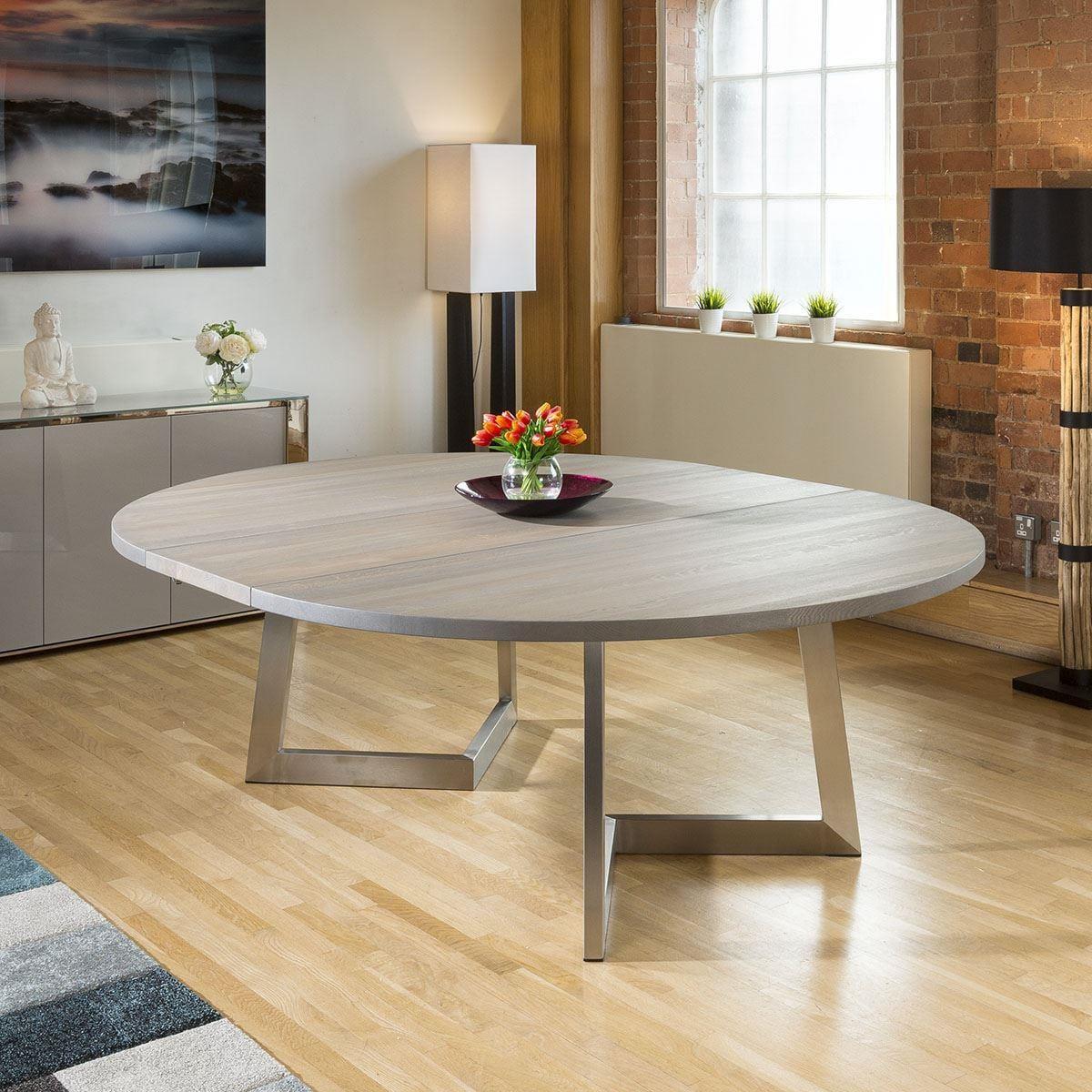 Massive 180-230cm Luxury Round Dining Table Oak Grey Oil Finish Stock