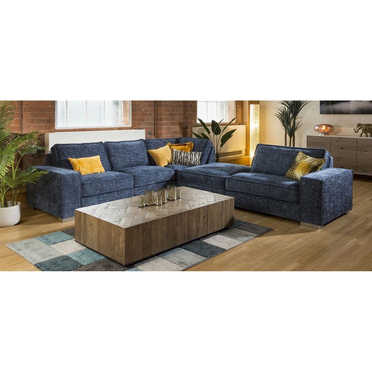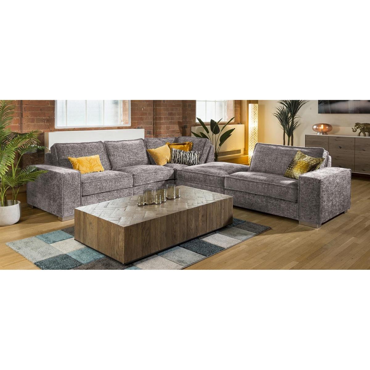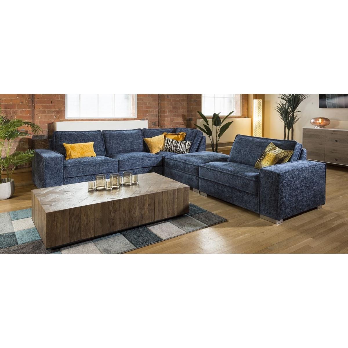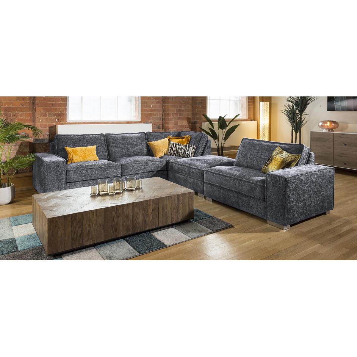 The superior Lexci 6 seater settee is exclusive to Quatropi. The modern super comfy sofa can comfortably seat 6 people and would look second to none in any living room or cinema room. The Lexci 7. R sofa is a great addition to the Lexci range and would be complemented by one of the matching Lexci footstools or armchair. This sofa is fully customisable with a full range of fabrics & colours to choose from. Beautiful design with soft padded arms, massive corner and U shaped sofa options and two different sizes of footstools. The Lexci range includes large back pillow cushions that doesn't only provide a stunning look, they also give versatility to ensure your comfort whatever your size or seating position. All pieces are superb quality with exceptional attention to detail especially the French stitched seams. Some of the great features of the Lexci range include oversize sections including corners, middle sections, footstools and Chaise ends, striking brushed stainless feet, thick French seams and soft back cushions give a completely unique contemporary look. Built with pillow soft hollow-fibre and high density foam cushion fillings, plump the back cushions occasionally to keep them looking fabulous. The Lexci range is completely modular so you can add and take away pieces as you need. Let our experts help you find the exact size and shape to fit your space perfectly. W325cm D285cm H83cm Soft Sit Cushions All dimensions are approximate due to fabric differences. Please allow tolerance of +/- 5cm to any direction