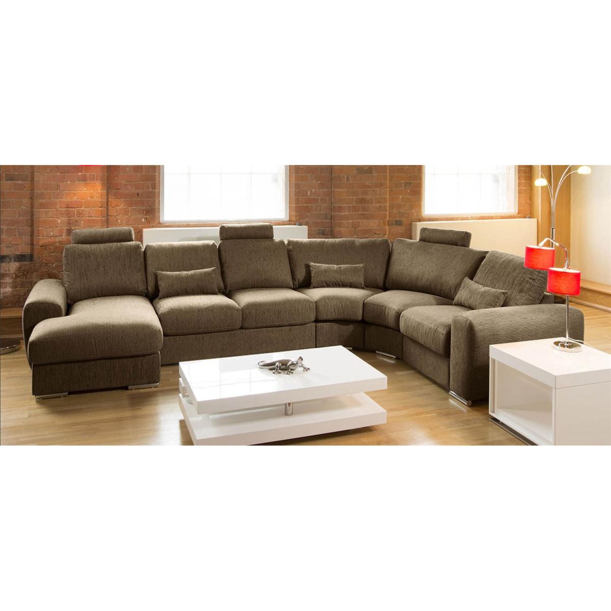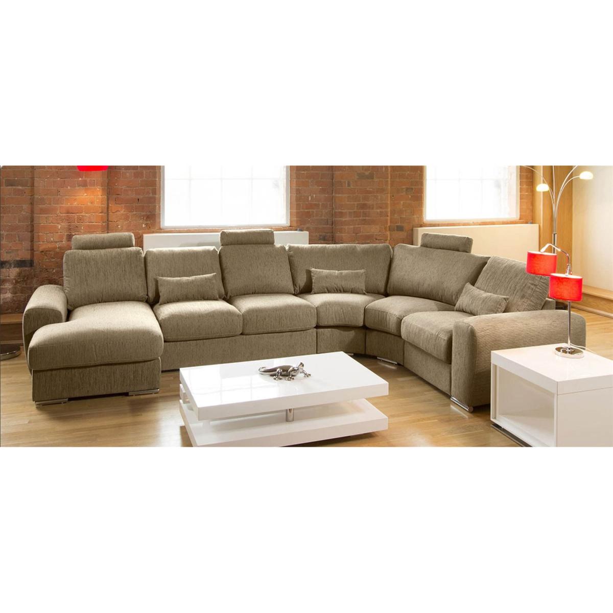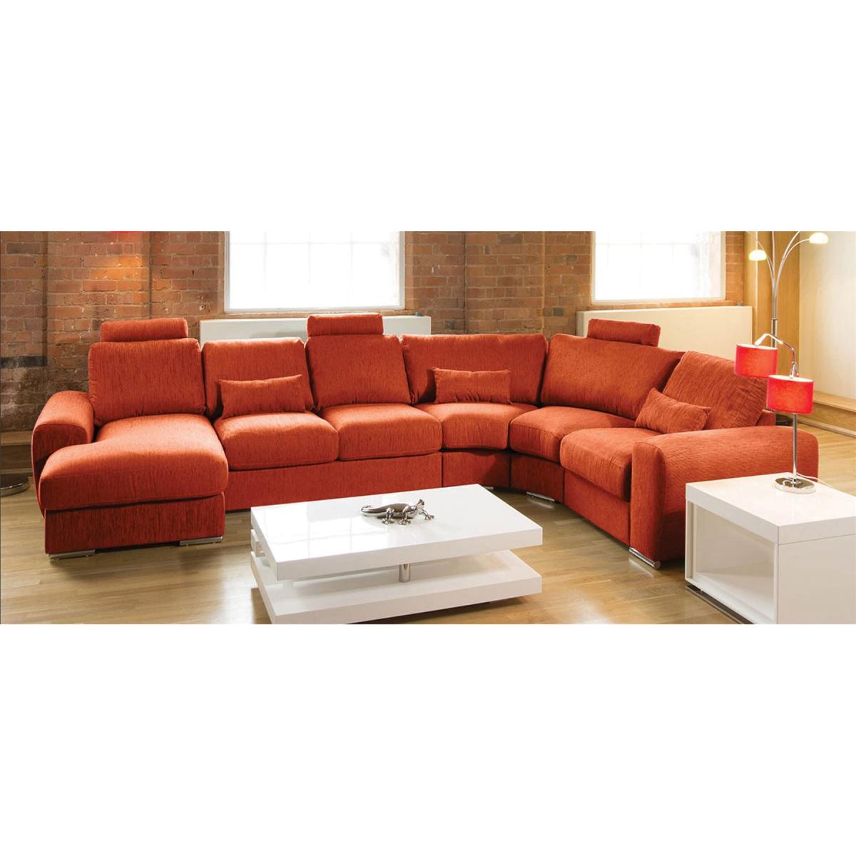 Large range of quality corner L shaped sofas, choose your fabric, choose your style. Available with coordinating headrests, footstools and pillow and scatter cushions at extra cost. The first thing that you will notice is the quality, it just oozes out of this set. Next will be the incredible comfort that is derived from superior Nosag springs in the seat frame and the pocket springs with high quality foam and fibre seat and back cushions. One touch of the thick heavy duty fabric will confirm that you can have a fabric that combines strength, style and comfort. All this is built on a strong solid wood frame and will be delivered in a few sections that easily bolt together. This giant corner group comes complete with 3 x movable headrests and 3 x pillow shape scatter cushions as pictured Notice the superwide arms, sleek headrests, stainless steel feet, oversize proportions etc. W388cm D248cm H108cm Fully Modular Sofa Range All dimensions are approximate due to fabric differences. Please allow tolerance of +/- 5cm to any direction