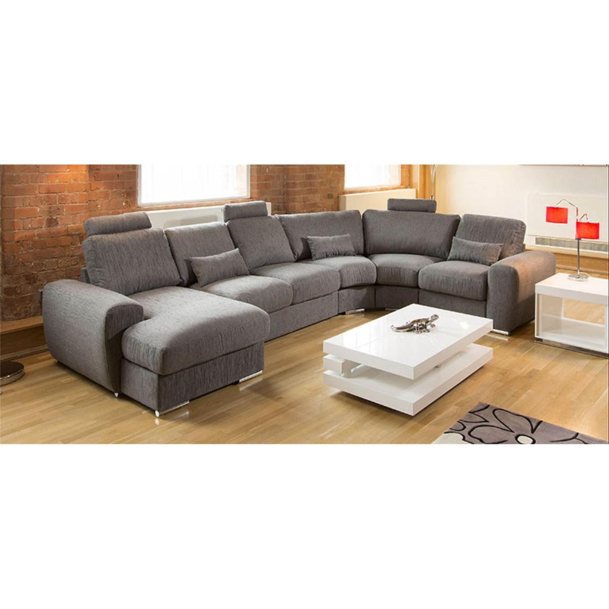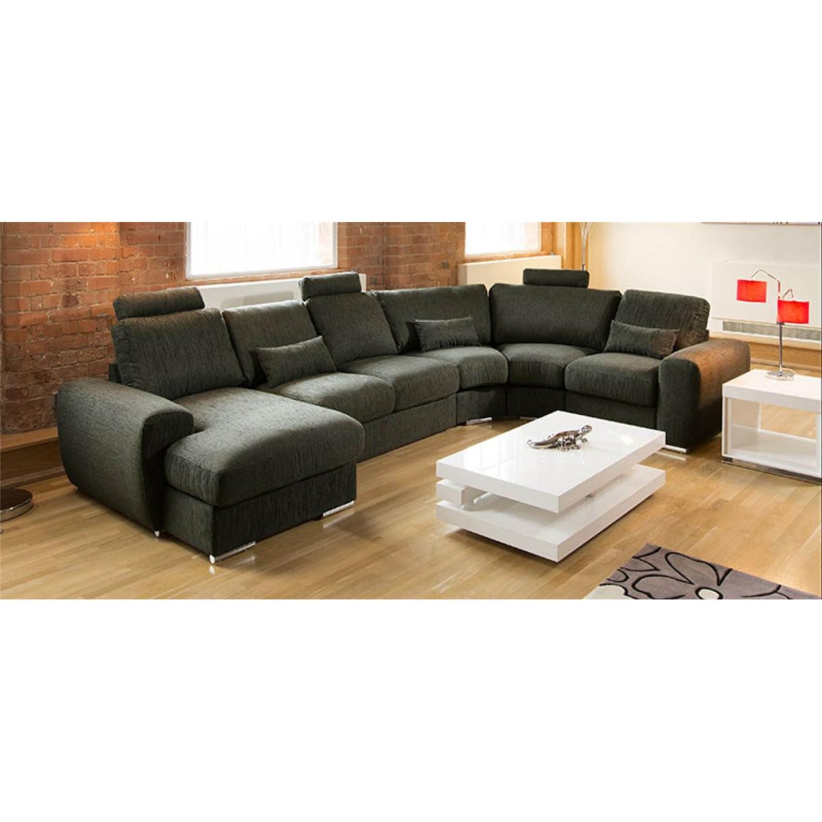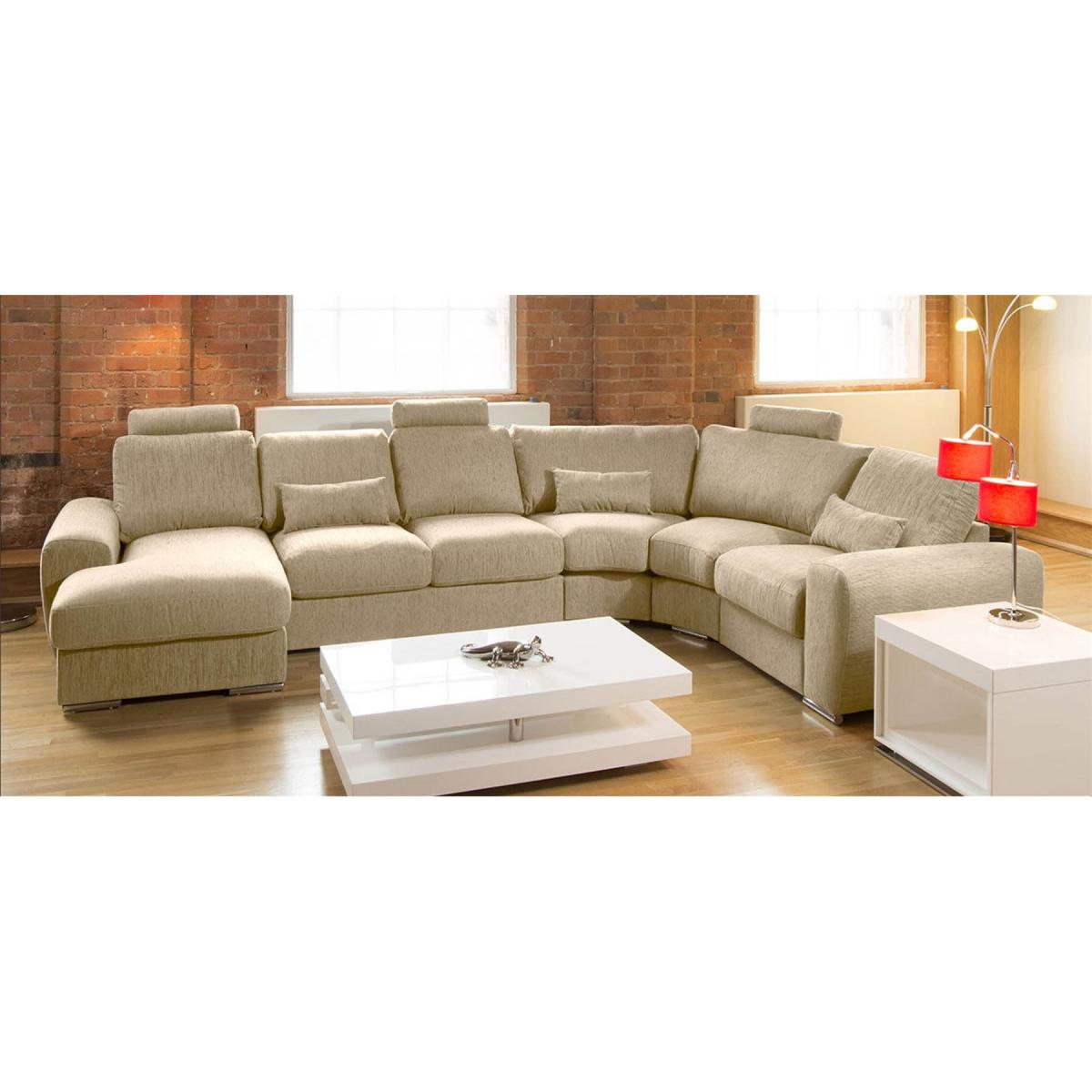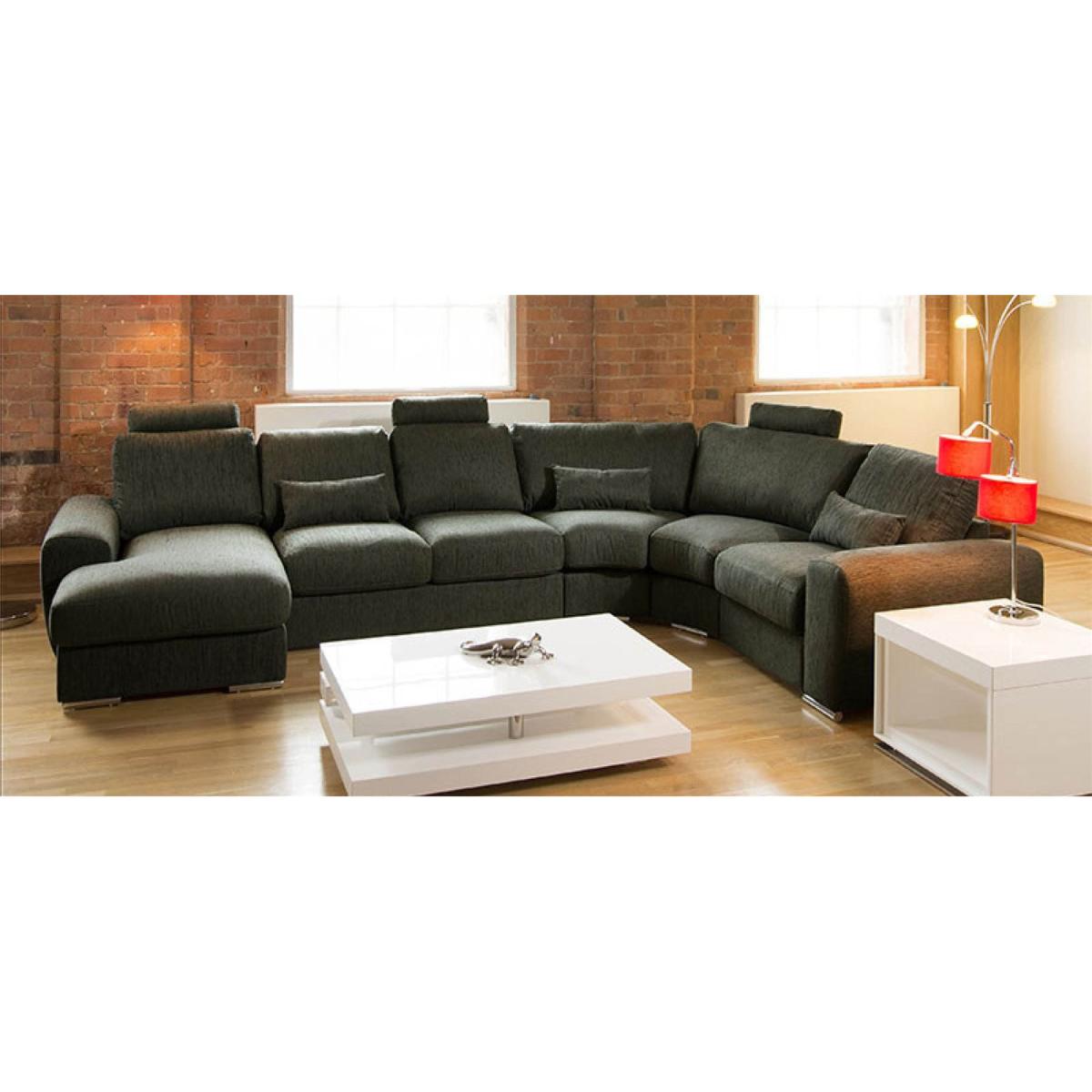 Large range of quality corner L shaped sofas, choose your fabric, choose your style. Available with coordinating headrests, footstools and pillow and scatter cushions at extra cost. The first thing that you will notice is the quality, it just oozes out of this set. Next will be the incredible comfort that is derived from superior Nosag springs in the seat frame and the pocket springs with high quality foam and fibre seat and back cushions. One touch of the thick heavy duty fabric will confirm that you can have a fabric that combines strength, style and comfort. All this is built on a strong solid wood frame and will be delivered in a few sections that easily bolt together. This giant corner group comes complete with 3 x movable headrests and 3 x pillow shape scatter cushions as pictured Notice the superwide arms, sleek headrests, stainless steel feet, oversize proportions etc. W388cm D248cm H108cm Fully Modular Sofa Range All dimensions are approximate due to fabric differences. Please allow tolerance of +/- 5cm to any direction