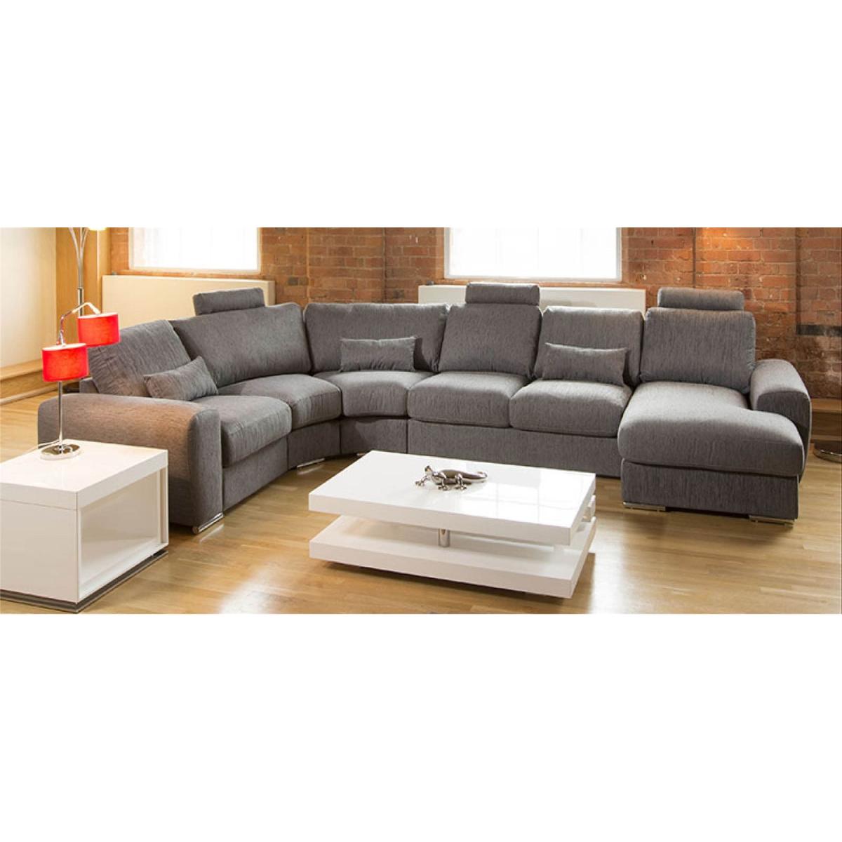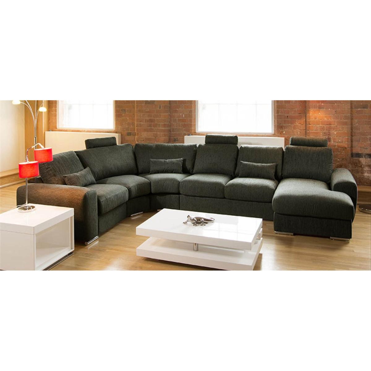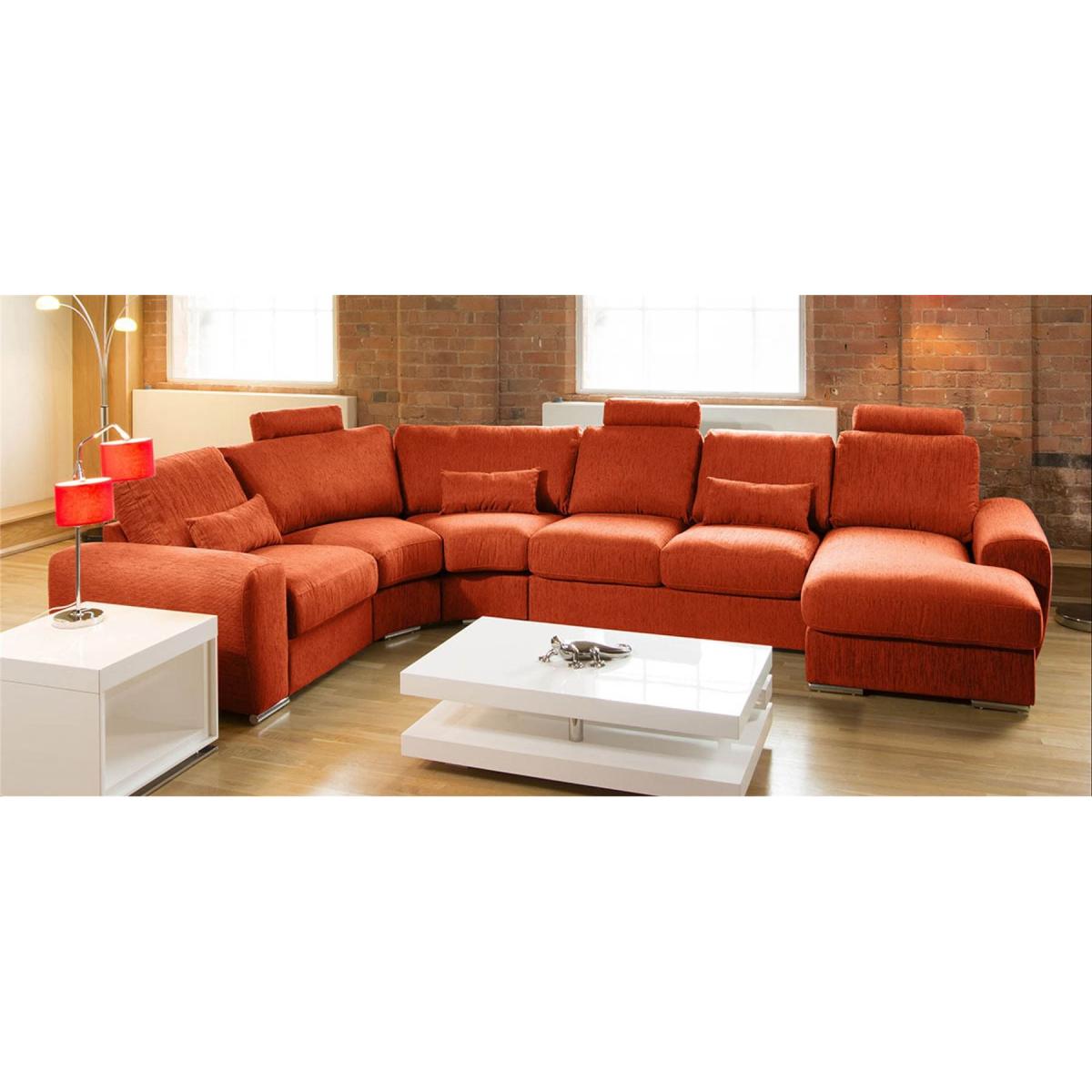 Large range of quality corner L shaped sofas, choose your fabric, choose your style. Available with coordinating headrests, footstools and pillow and scatter cushions at extra cost. The first thing that you will notice is the quality, it just oozes out of this set. Next will be the incredible comfort that is derived from superior Nosag springs in the seat frame and the pocket springs with high quality foam and fibre seat and back cushions. One touch of the thick heavy duty fabric will confirm that you can have a fabric that combines strength, style and comfort. All this is built on a strong solid wood frame and will be delivered in a few sections that easily bolt together. Notice the superwide arms, sleek headrests, stainless steel feet, oversize proportions etc. W388cm D248cm H108cm Fully Modular Sofa Range All dimensions are approximate due to fabric differences. Please allow tolerance of +/- 5cm to any direction